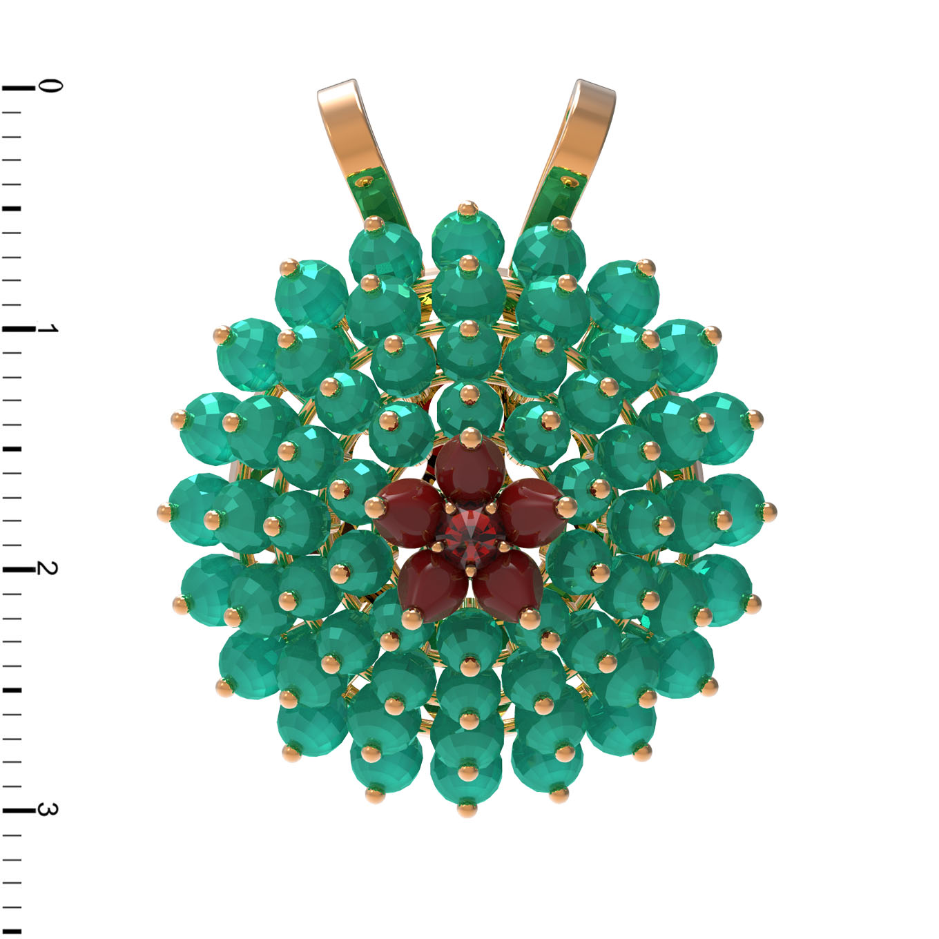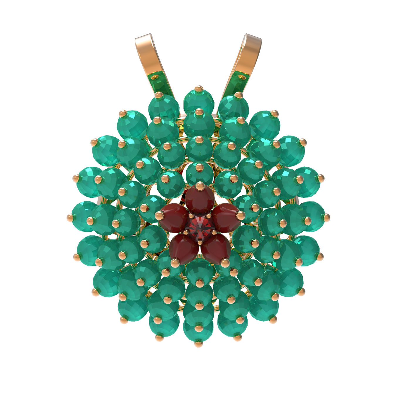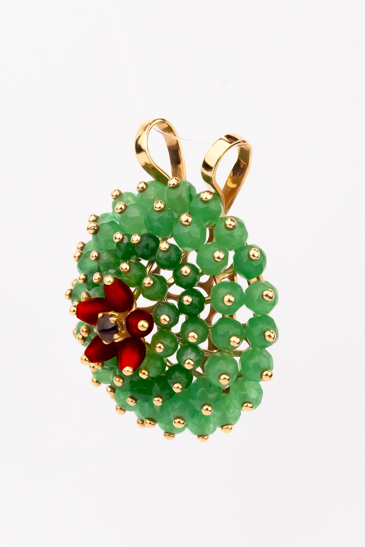 Подвеска из золота c гранатом, хризопразом и кораллом