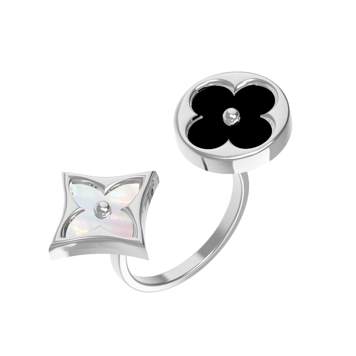 Кольцо из белого золота c ониксом и перламутром