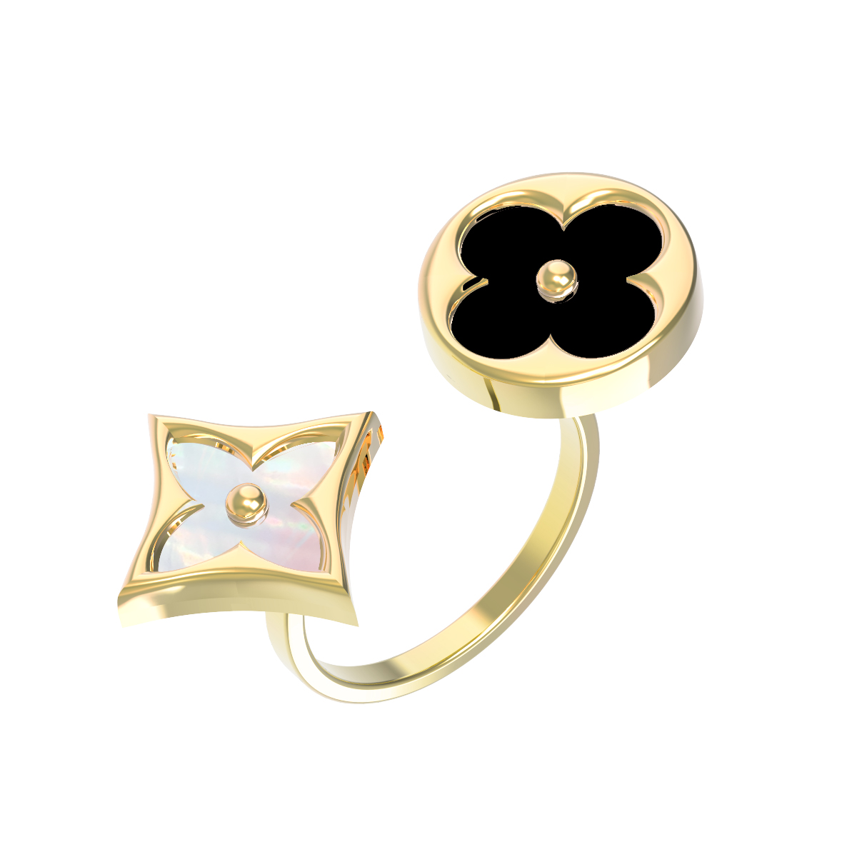 Кольцо из лимонного золота c ониксом и перламутром