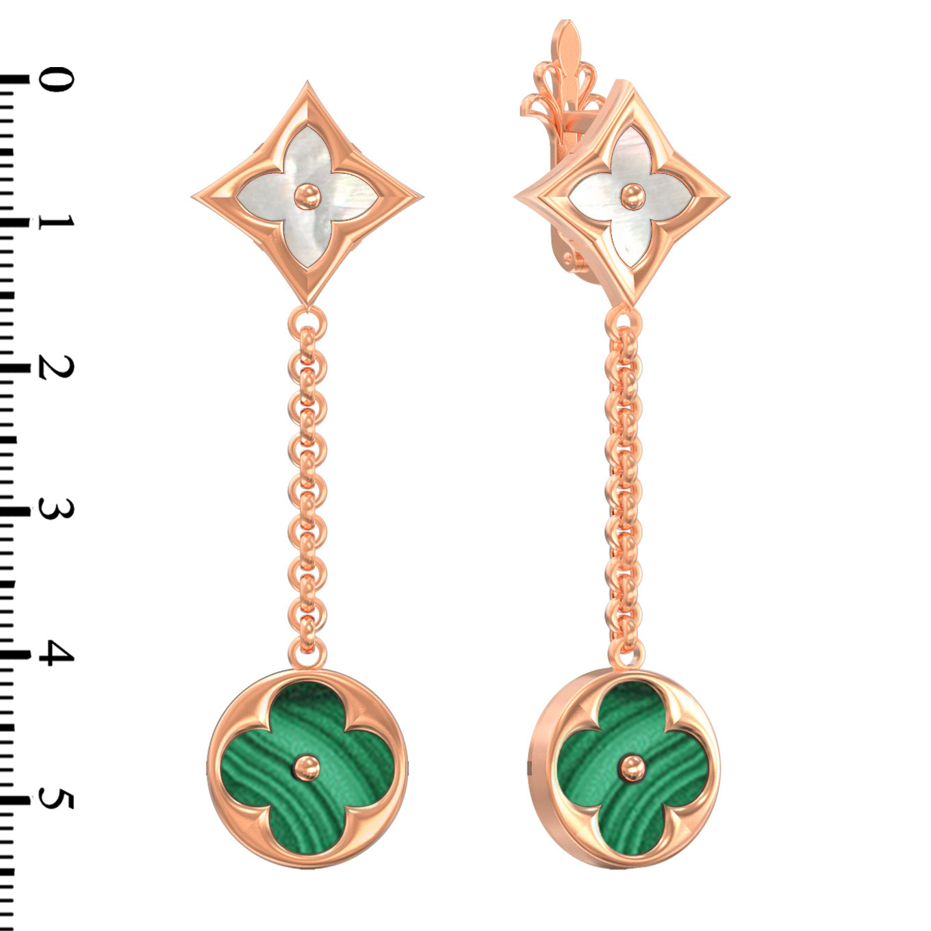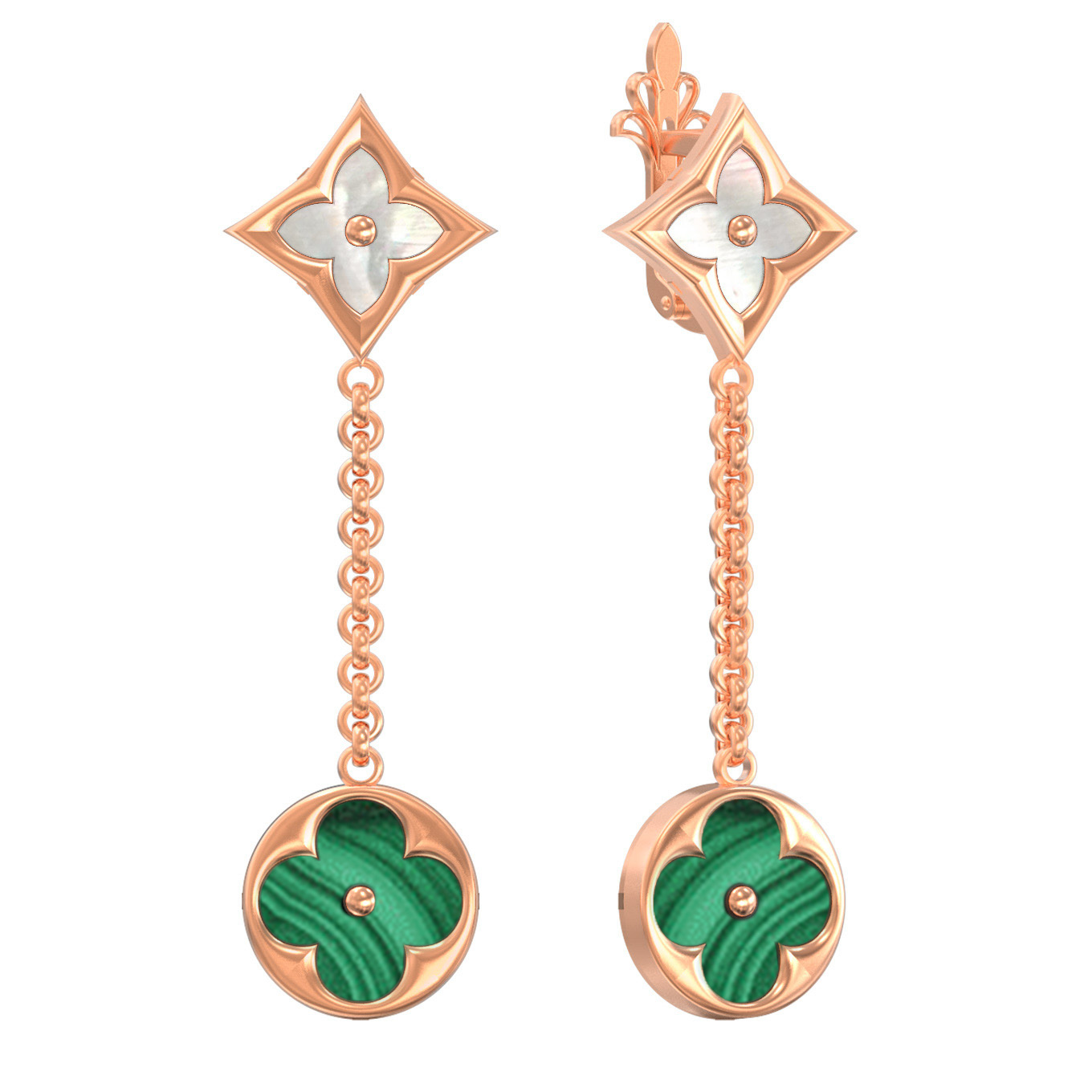 Серьги из золота c малахитом и перламутром