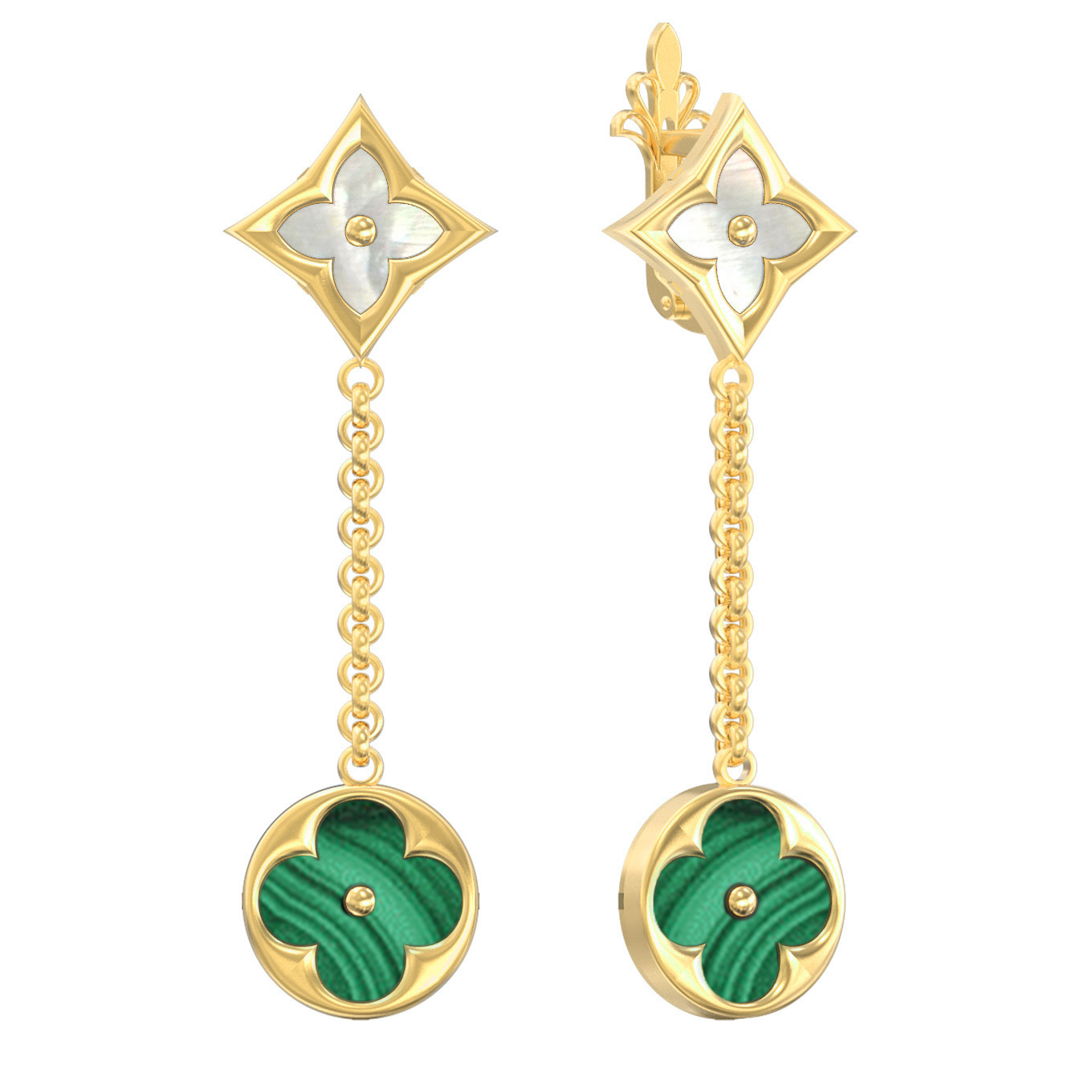 Серьги из лимонного золота c малахитом и перламутром