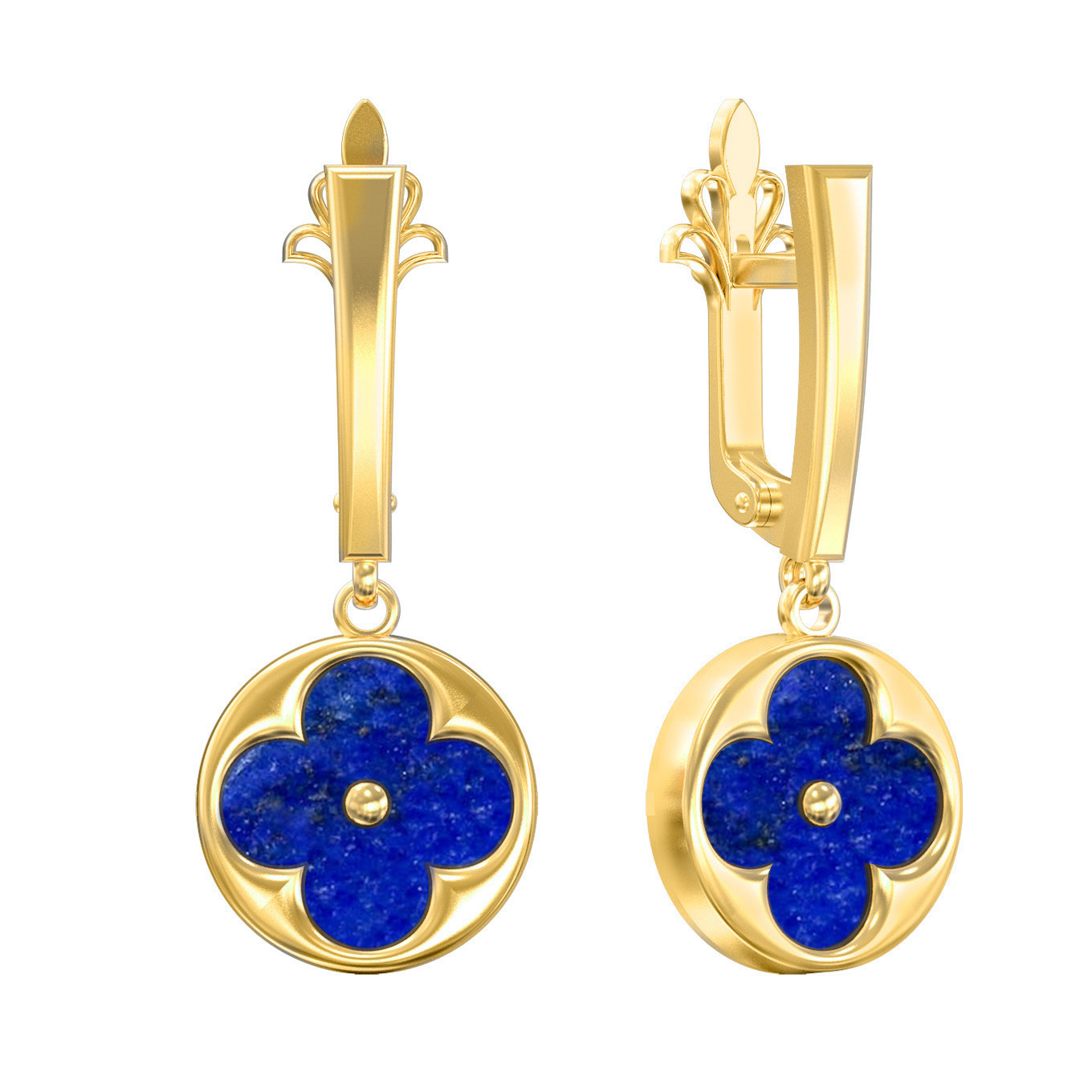 Серьги из лимонного золота c лазуритом
