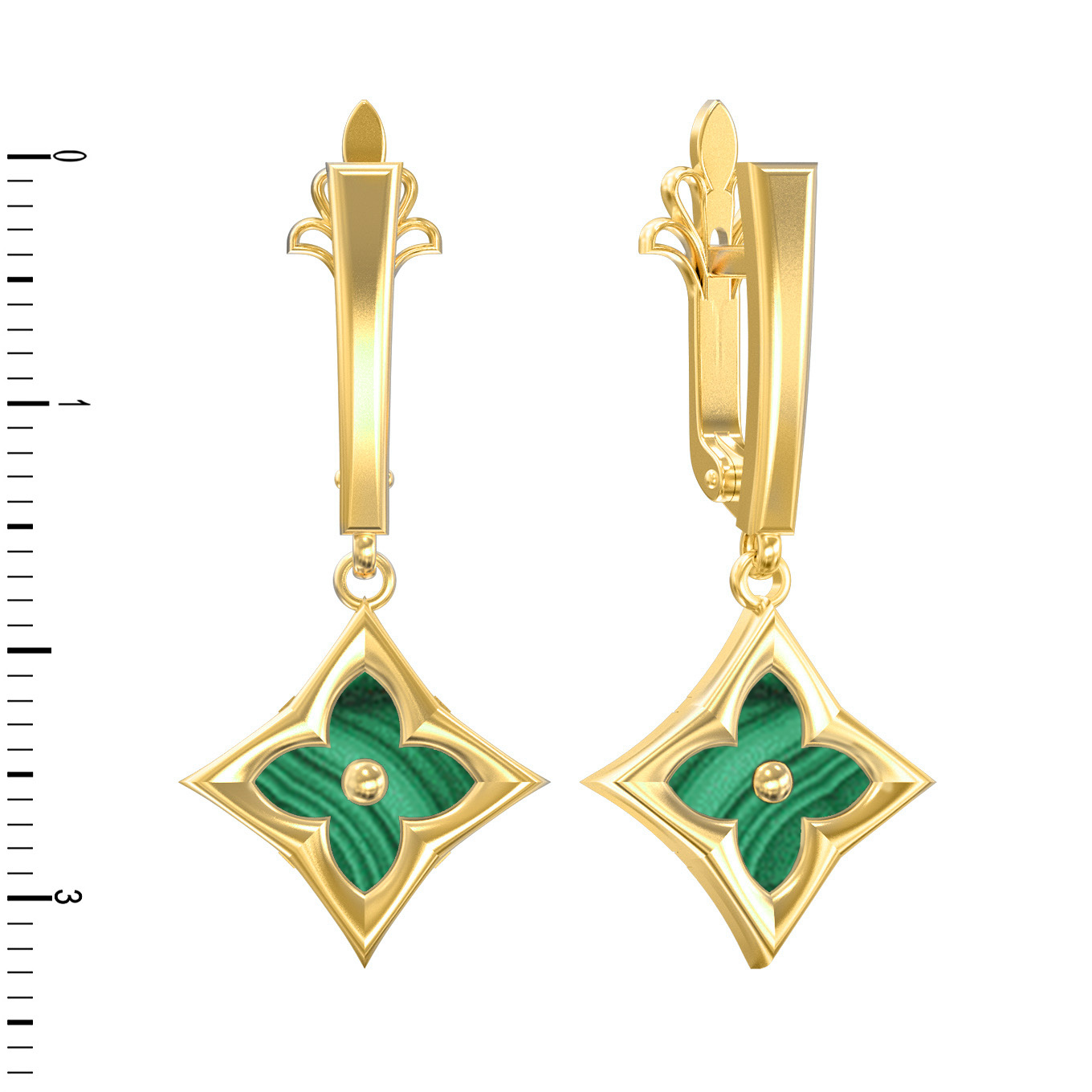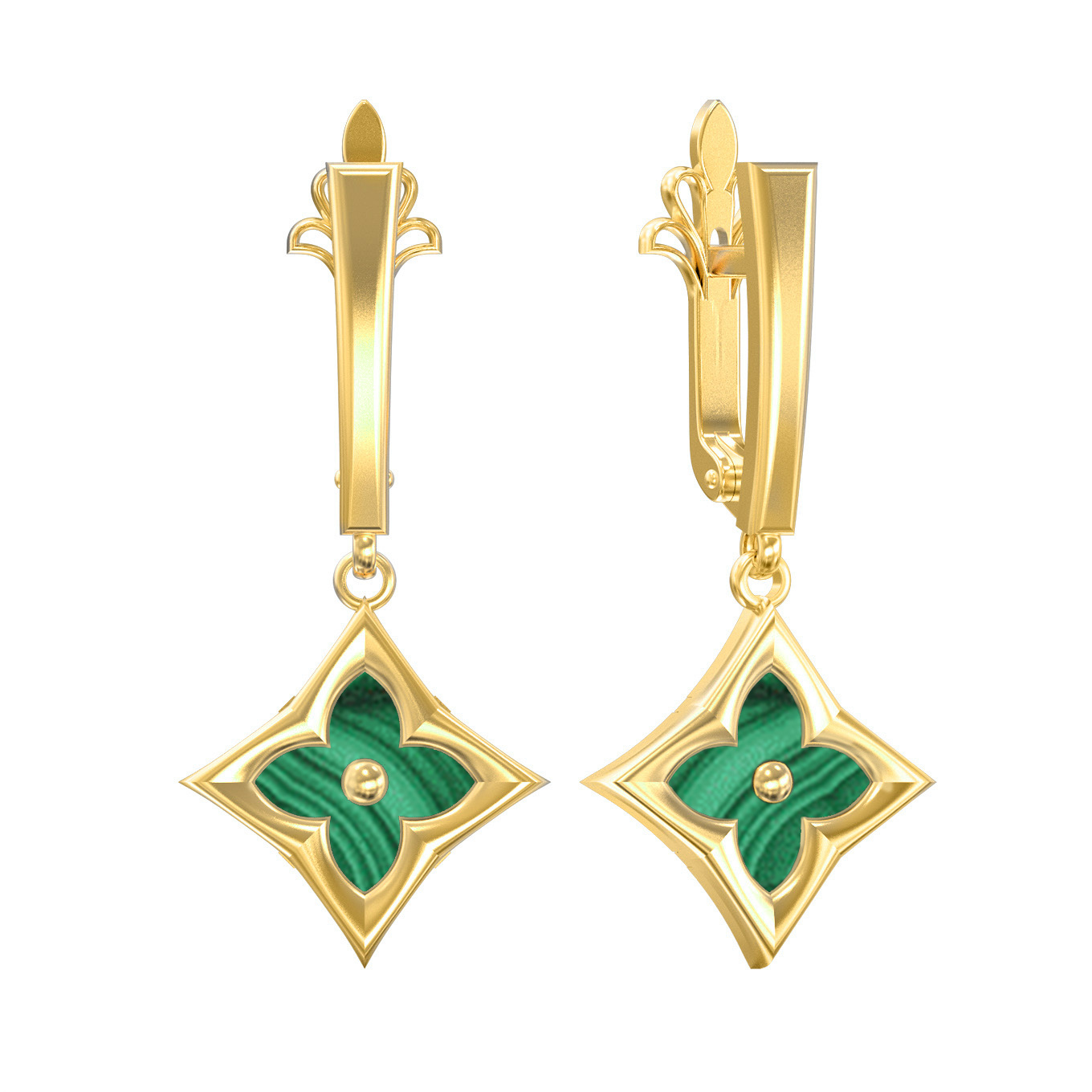 Серьги из лимонного золота c малахитом