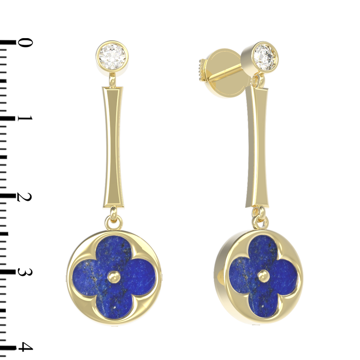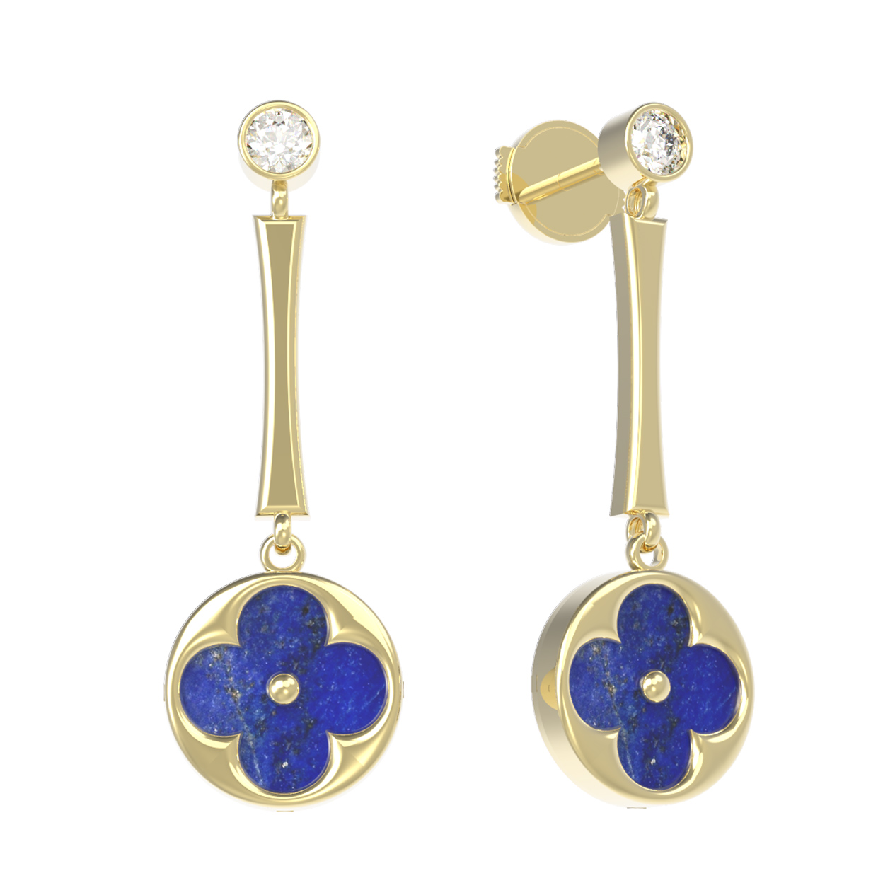 Серьги из лимонного золота c фианитом и лазуритом