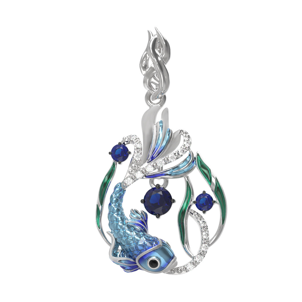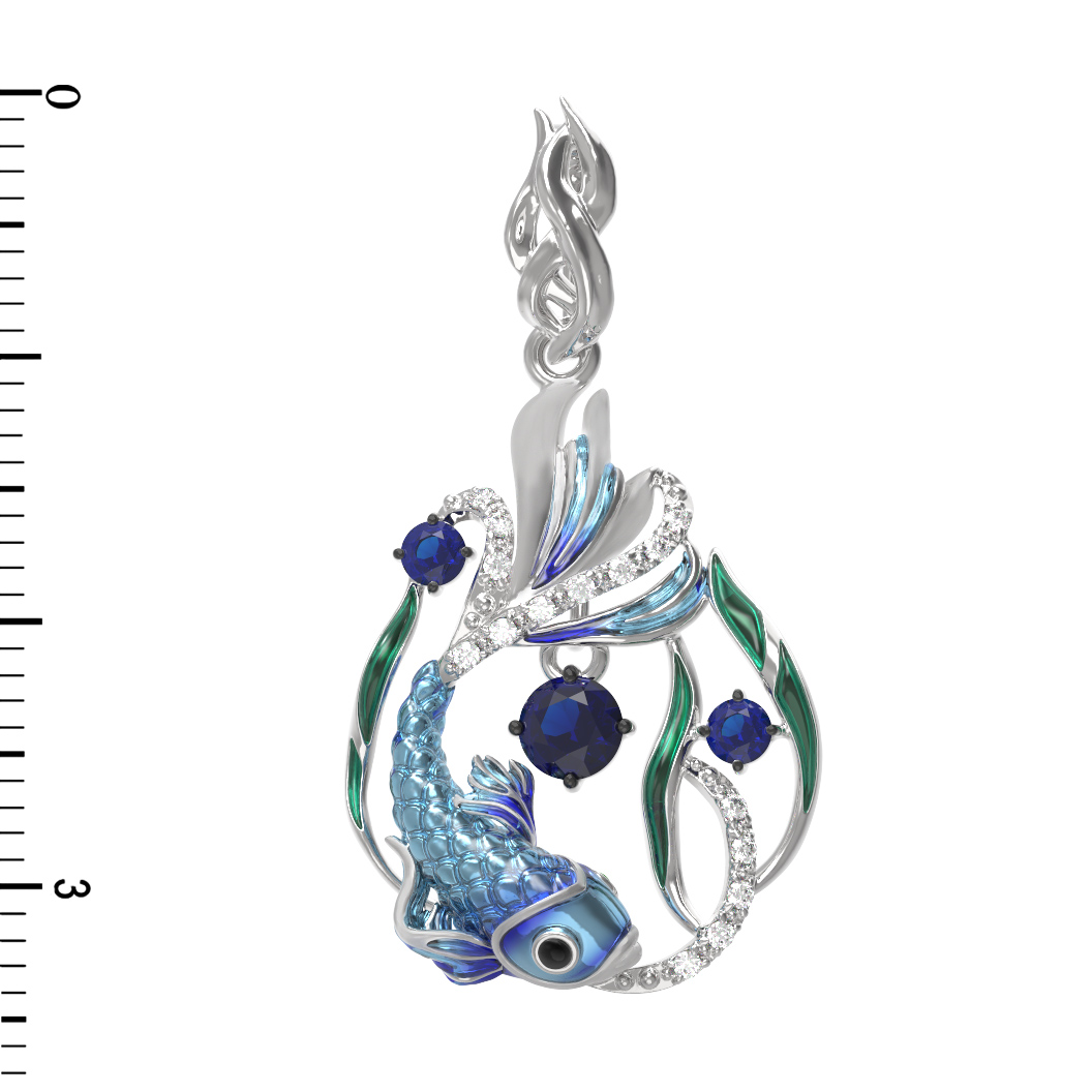 Подвеска из белого золота c эмалью, фианитом и сапфиром