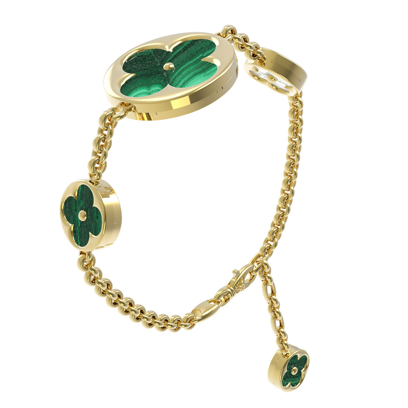 Браслет из лимонного золота c малахитом и перламутром