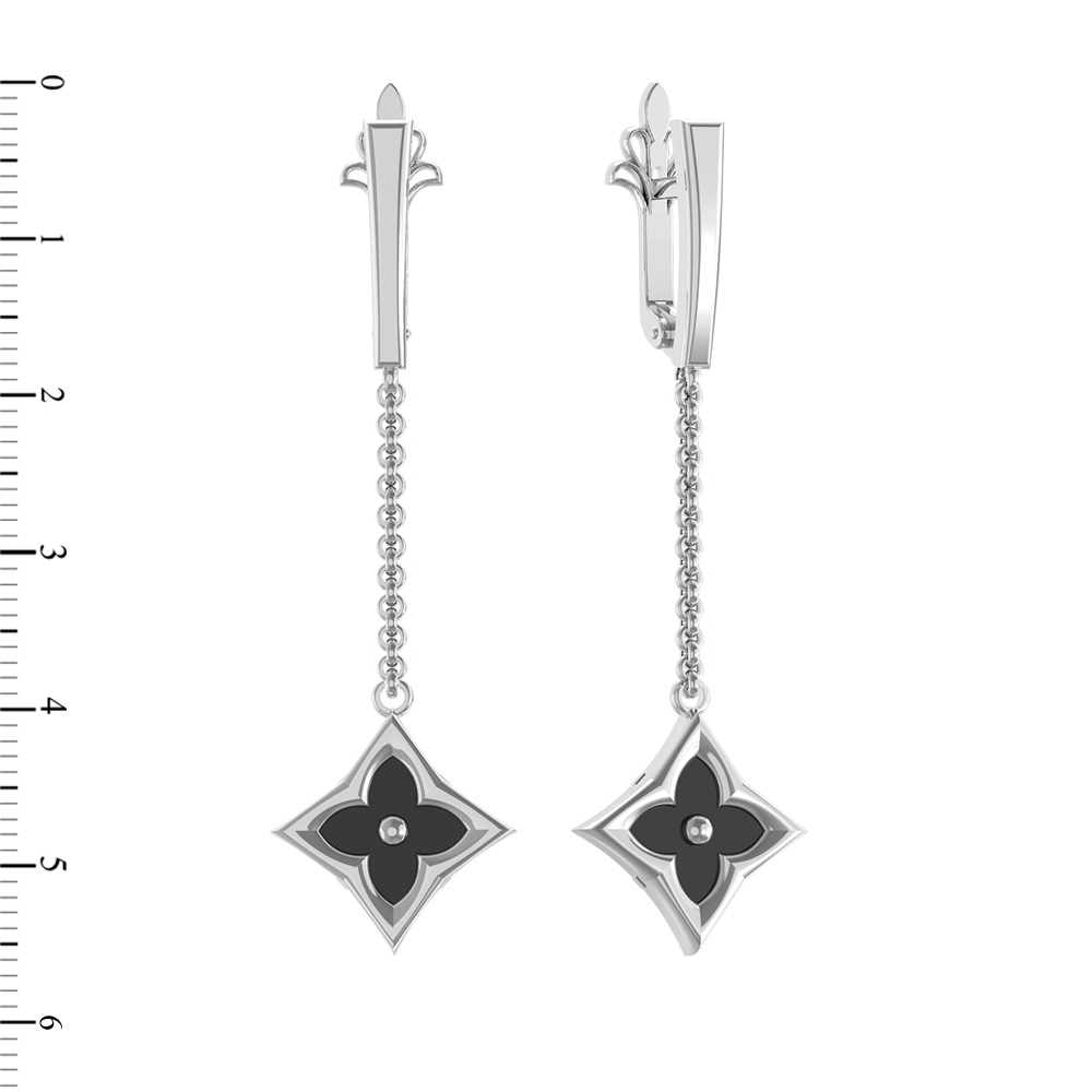 Серьги из белого золота c ониксом