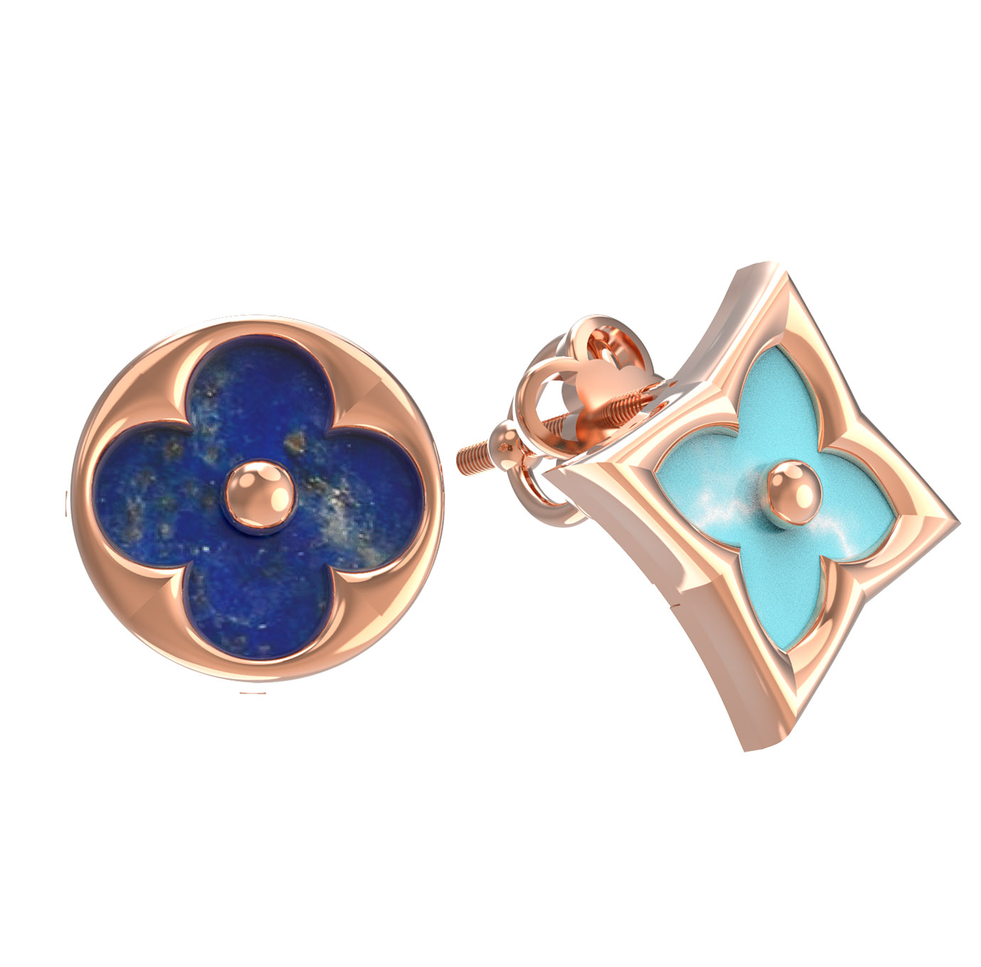 Серьги из золота c бирюзой и лазуритом