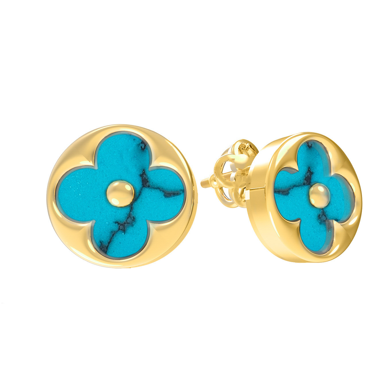 Серьги из лимонного золота c бирюзой