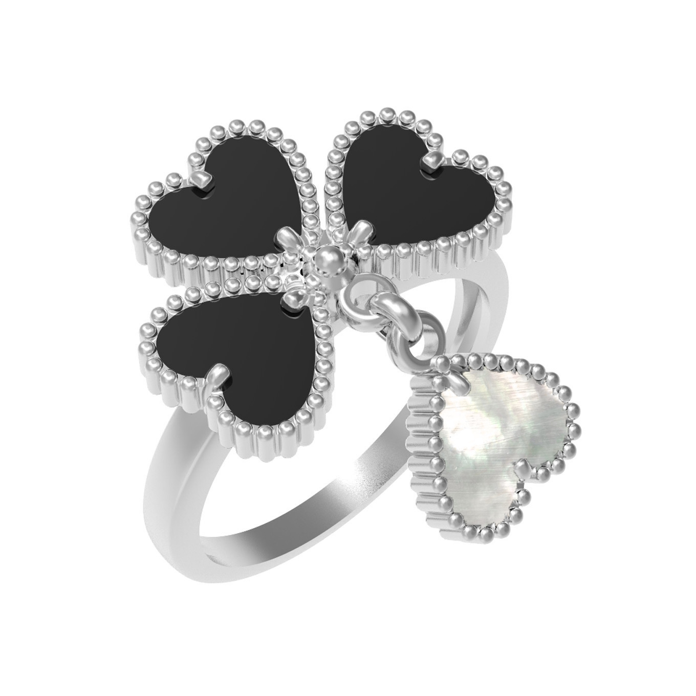 Кольцо из белого золота c ониксом и перламутром