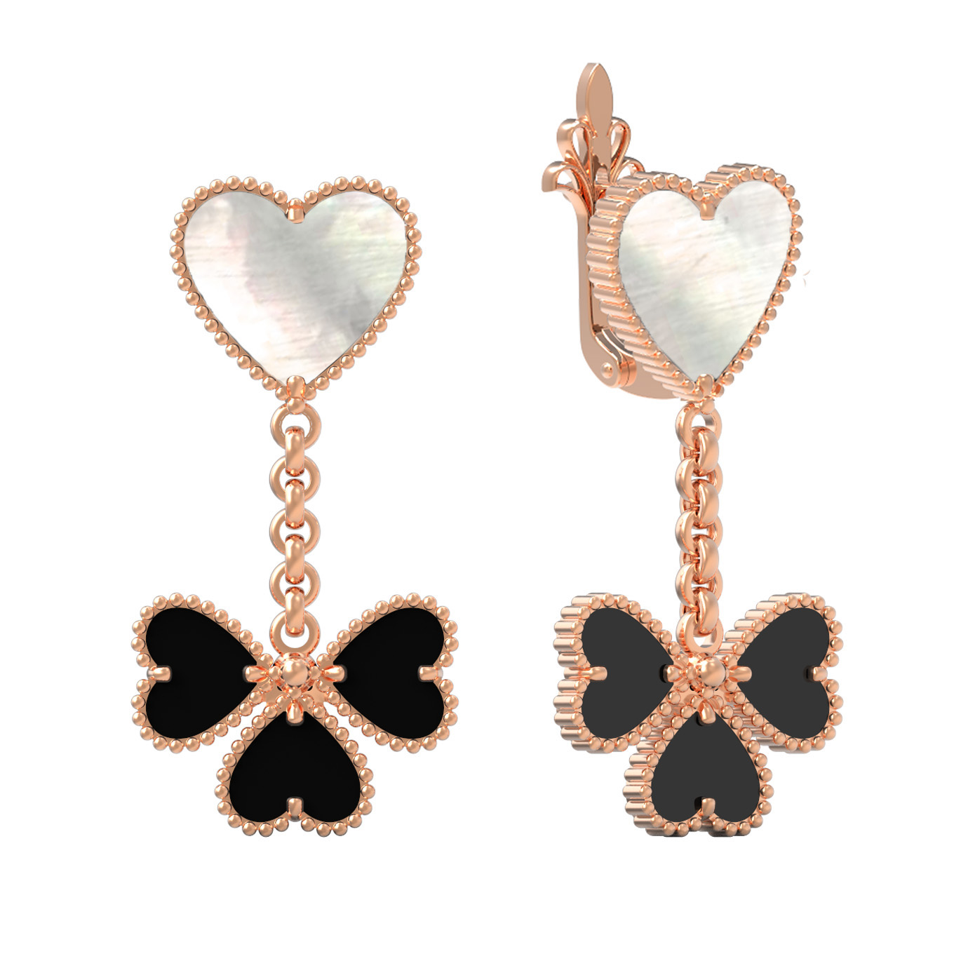 Серьги из золота c ониксом и перламутром