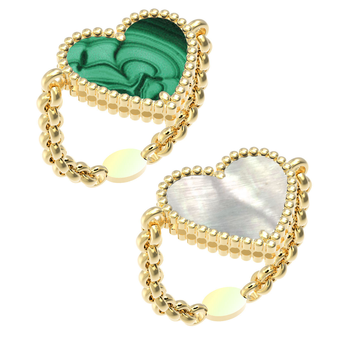 Кольцо из лимонного золота c малахитом и перламутром