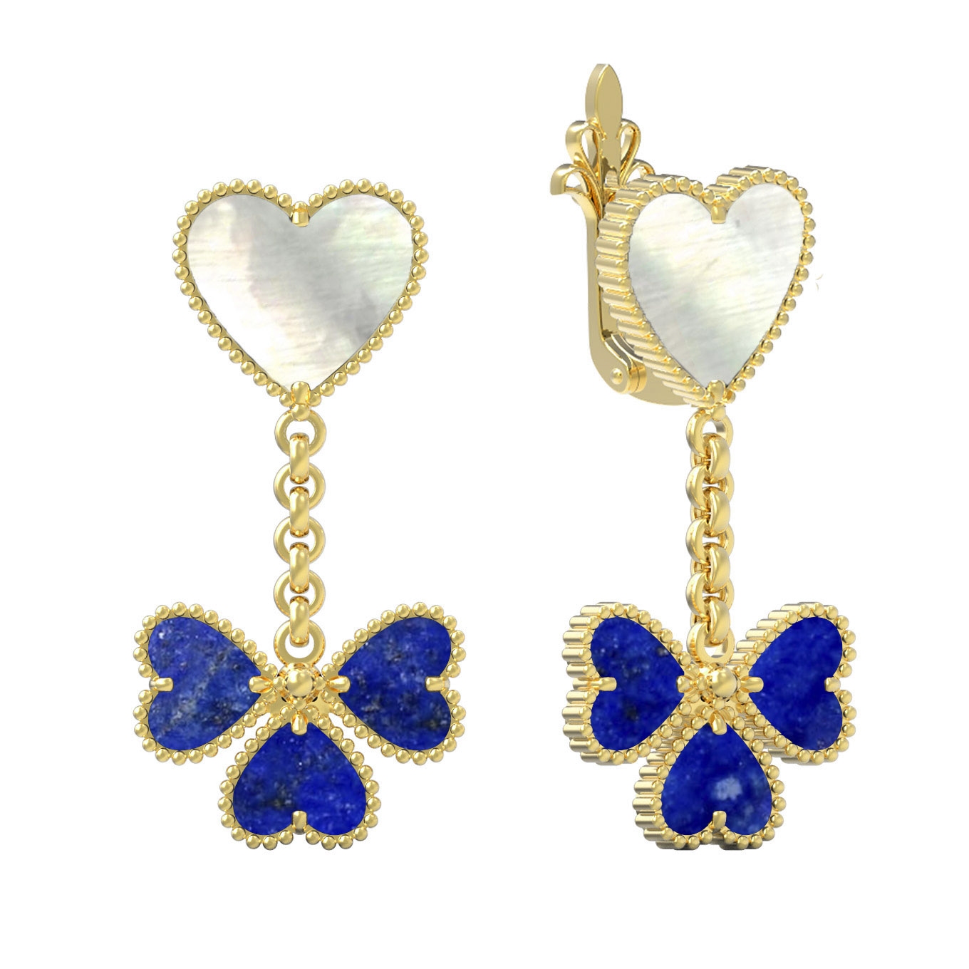 Серьги из лимонного золота c лазуритом и перламутром