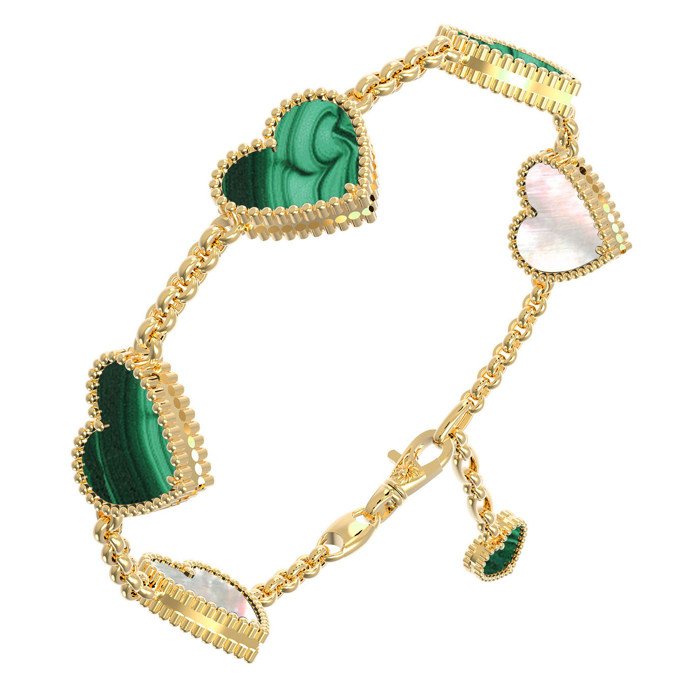 Браслет из лимонного золота c малахитом и перламутром