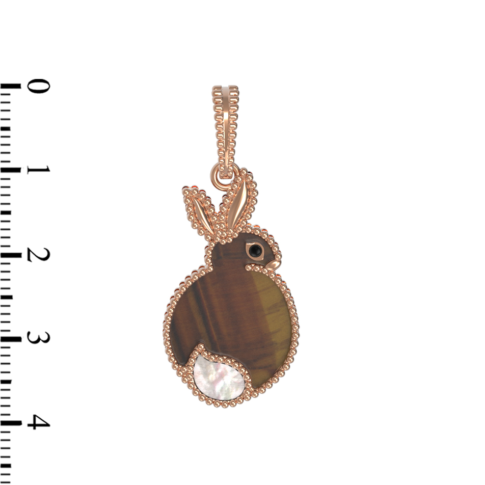 Подвеска из золота c эмалью, тигровым глазом и перламутром