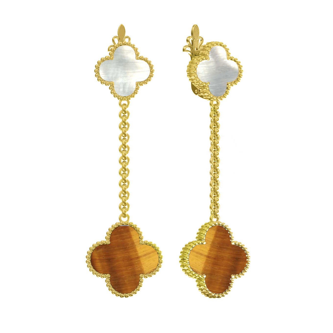 Серьги из лимонного золота c тигровым глазом и перламутром