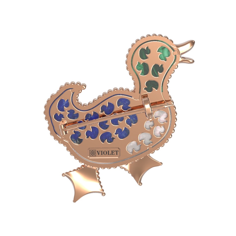 Брошь из золота c эмалью, лазуритом, малахитом и перламутром