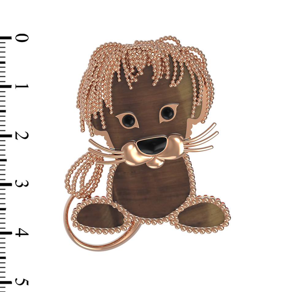 Брошь из золота c эмаль и тигровым глазом