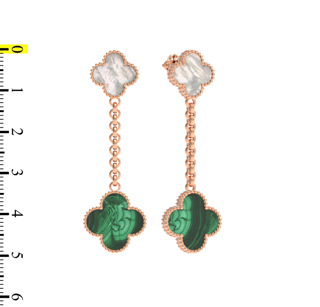 Серьги из золота c малахитом и перламутром