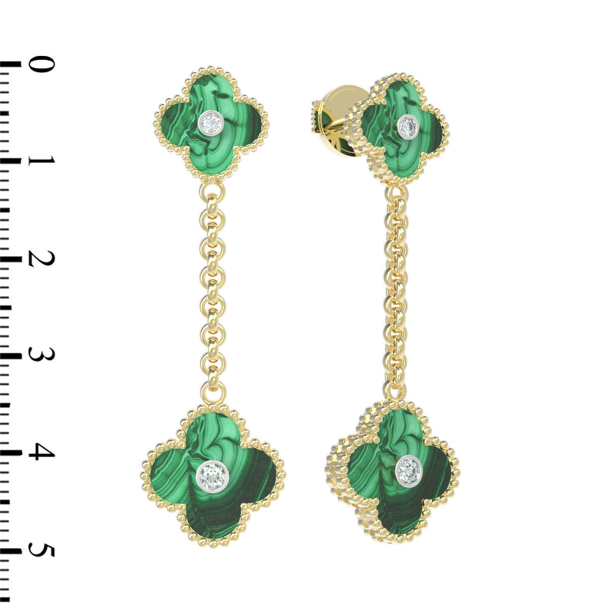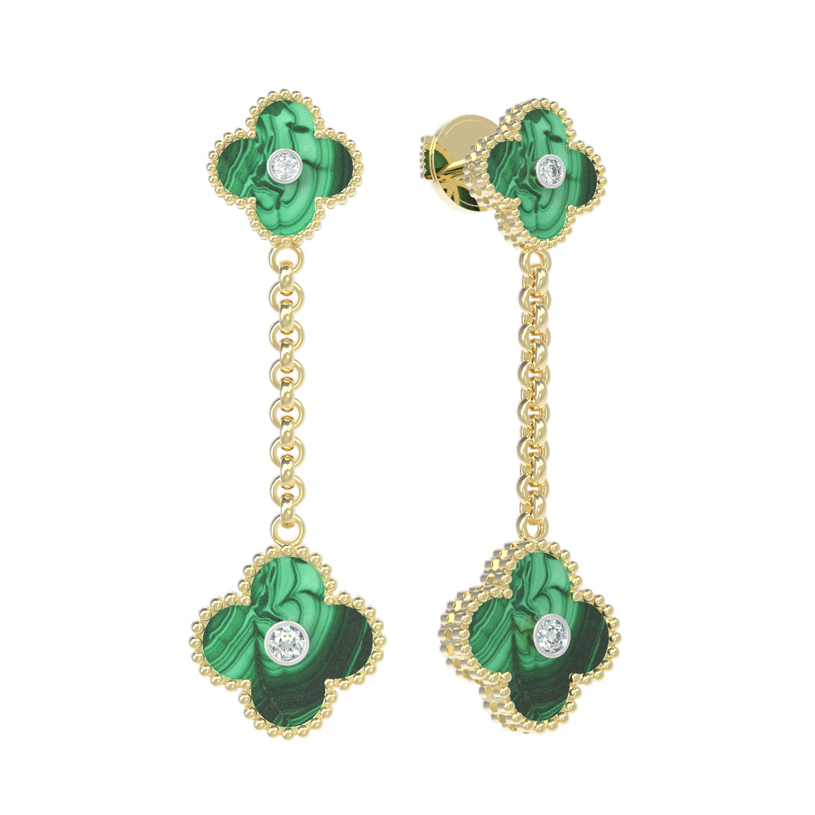 Серьги из лимонного золота c бриллиантами и малахитом