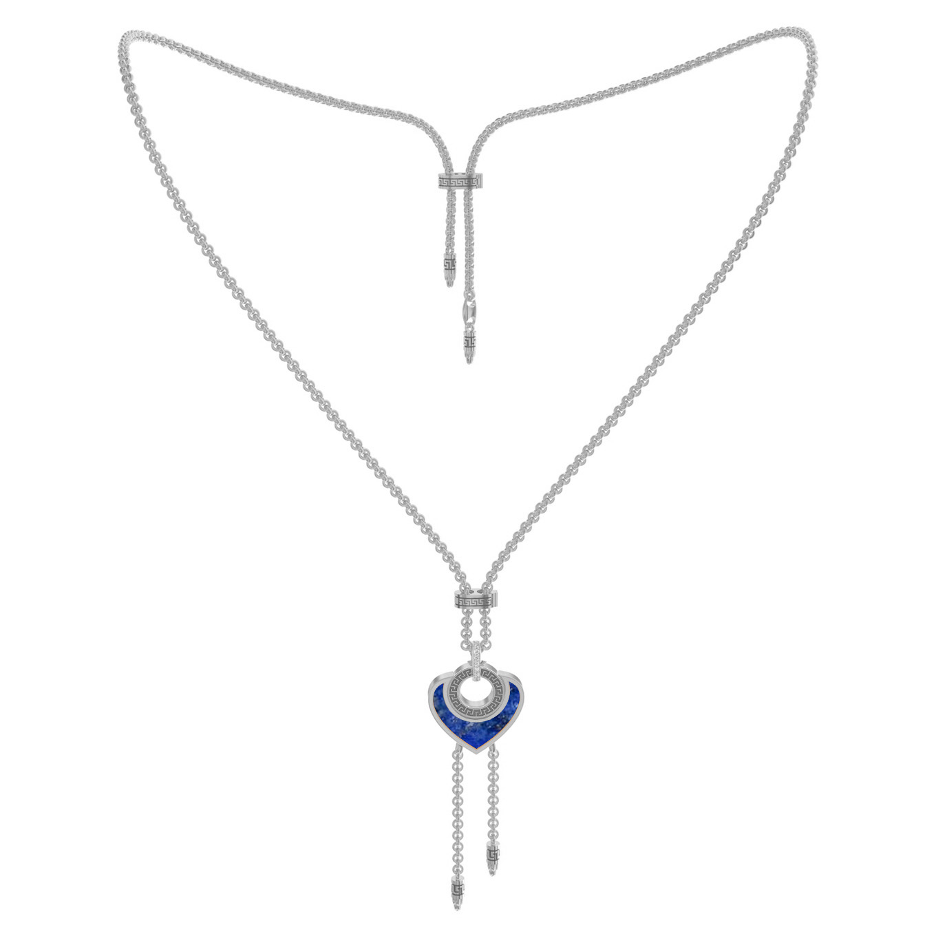 • Колье из белого золота c фианитом, лазуритом и перламутром
