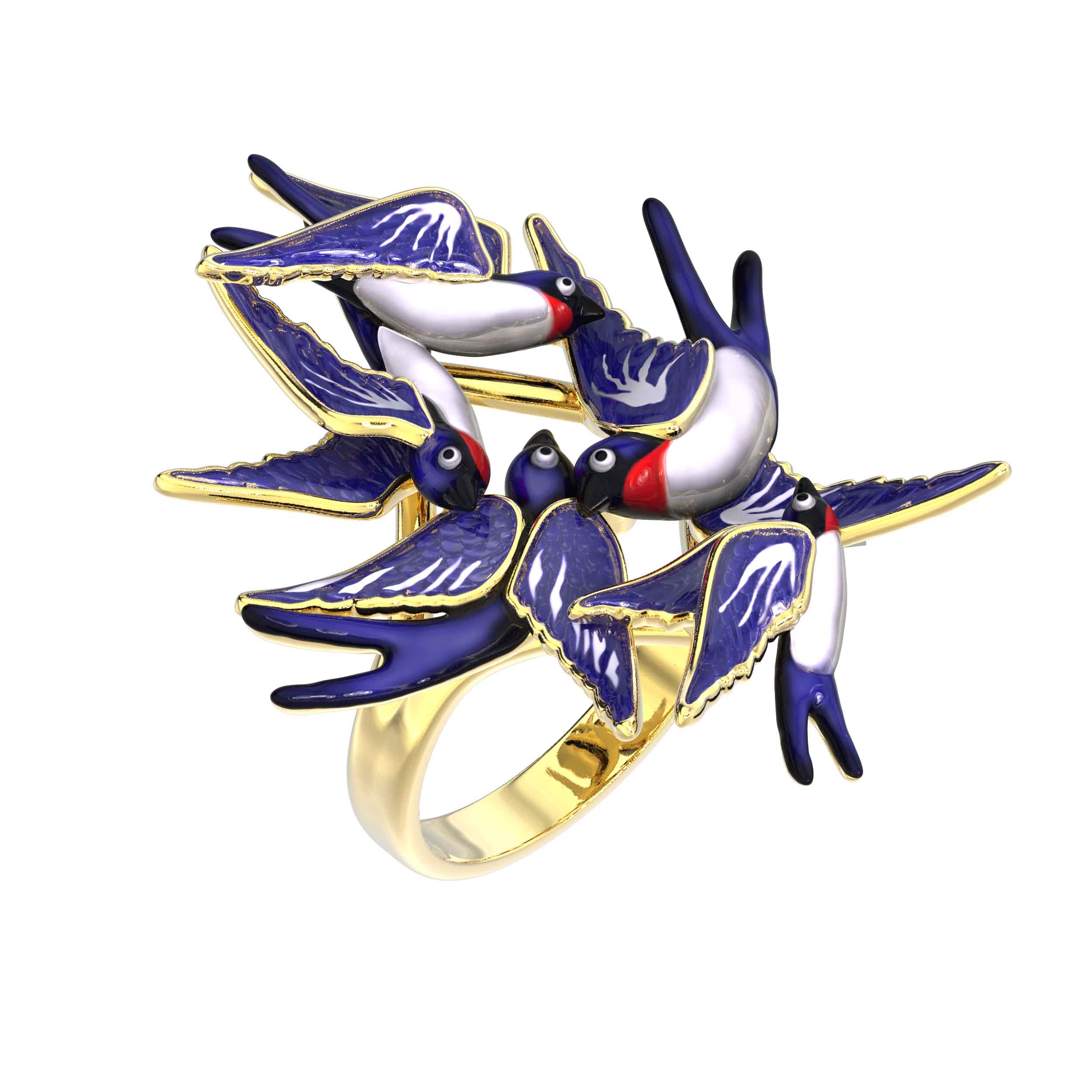 Кольцо из лимонного золота c эмалью