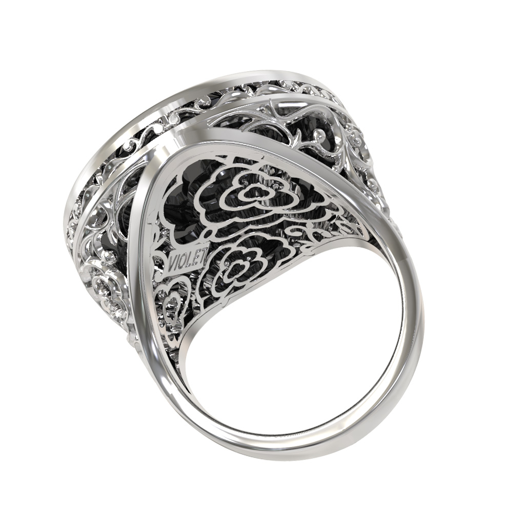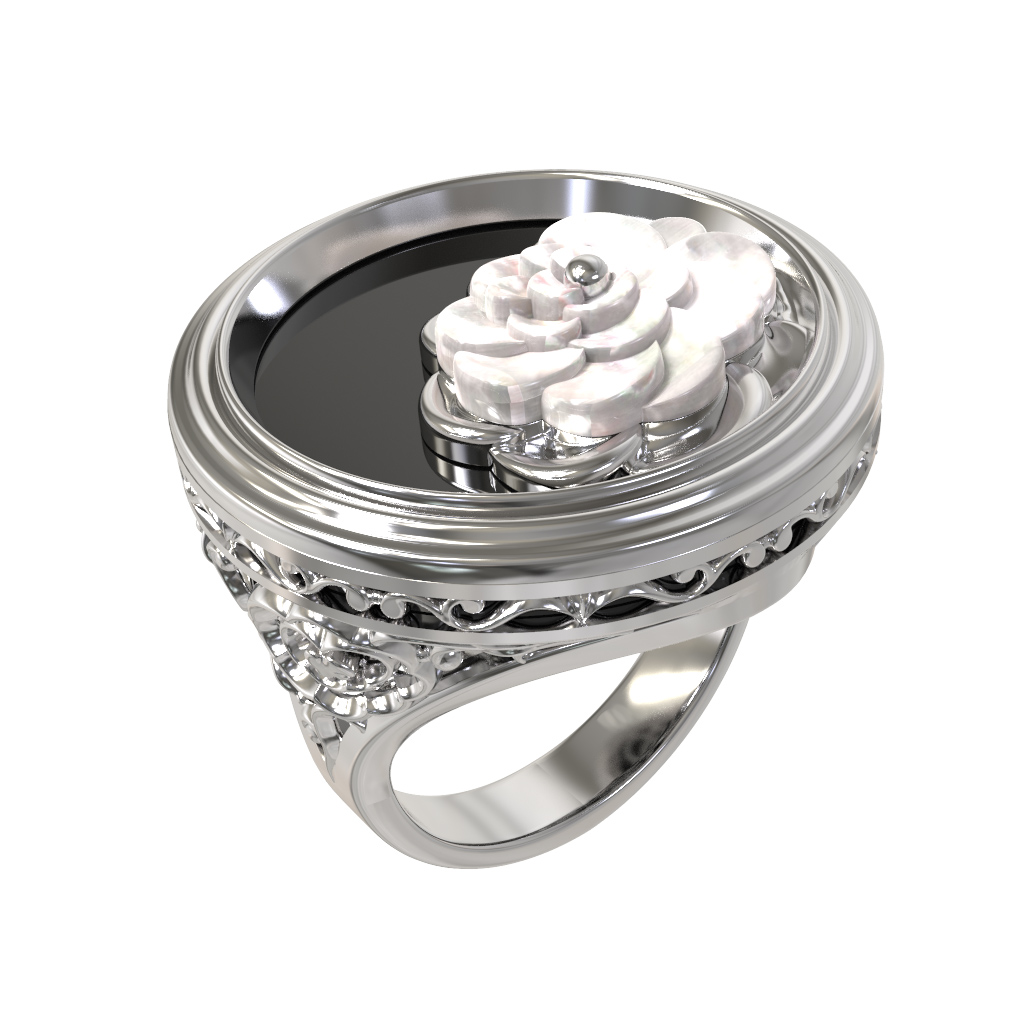 Кольцо из белого золота c ониксом и перламутром