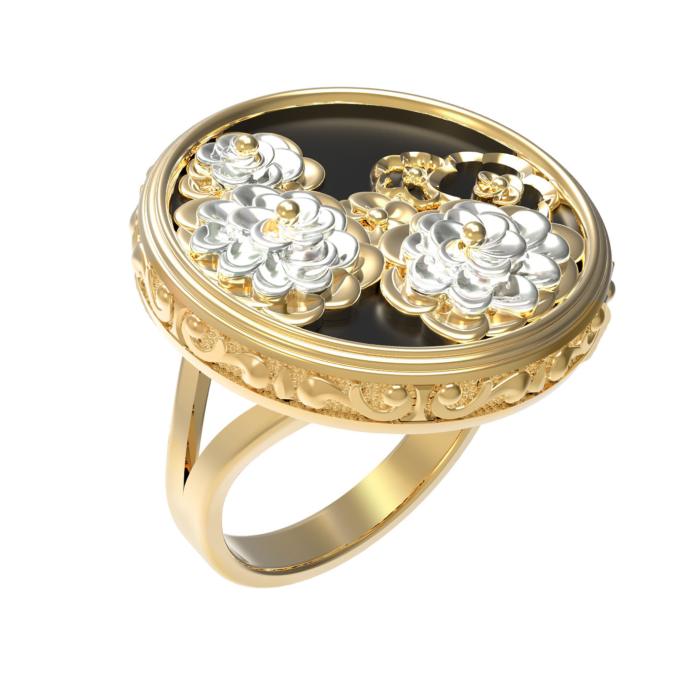 Кольцо из лимонного золота c ониксом и перламутром