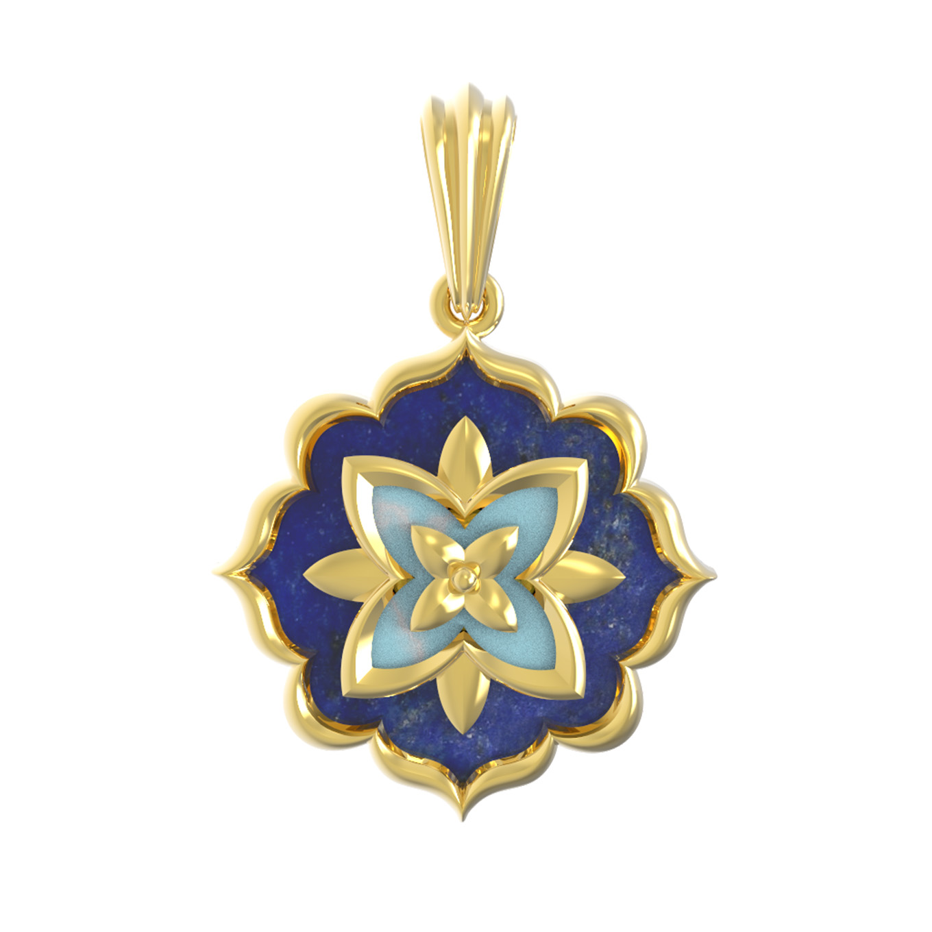 Подвеска из лимонного золота c бирюзой и лазуритом