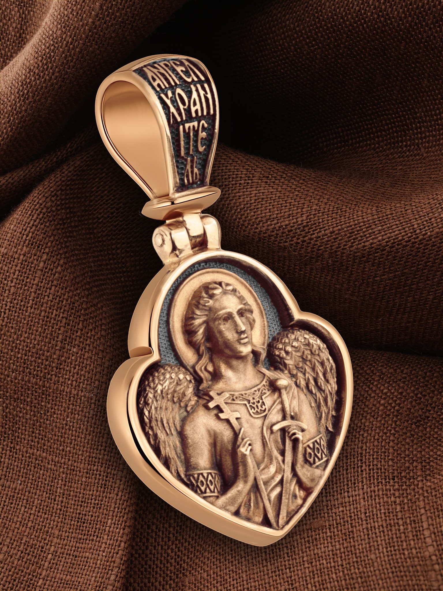 На лицевой стороне образка изображен Святой Ангел-Хранитель в виде прекрасного, светозарного юноши держащего в правой руке крест, а в левой — мечь. Ангел-Хранитель — это Ангел приставляемый Богом к человеку при крещении для охраны и помощи в добрых делах. Он невидимо находится при человеке на протяжении всей его жизни, если человек сохраняет в себе любовь к Богу и истинную веру перед Ним. Ангел-Xранитель делают для нас все, что служит к истинному нашему благу и спасению. Невидимо пребывая при нас постоянно, он, руководствуя нас ко спасению, не только по нашему желанию таинственно наставляет нас на все доброе и полезное, не только возносит наши молитвы к Богу, но еще и сам от себя охраняют и защищают нас от врагов видимых и невидимых и ходатайствует за нас пред Богом.
