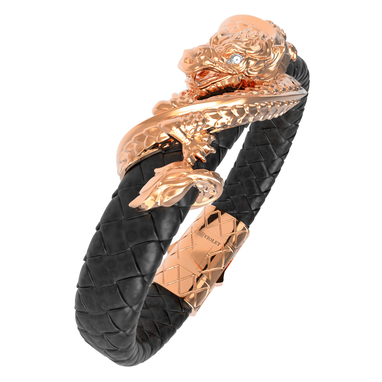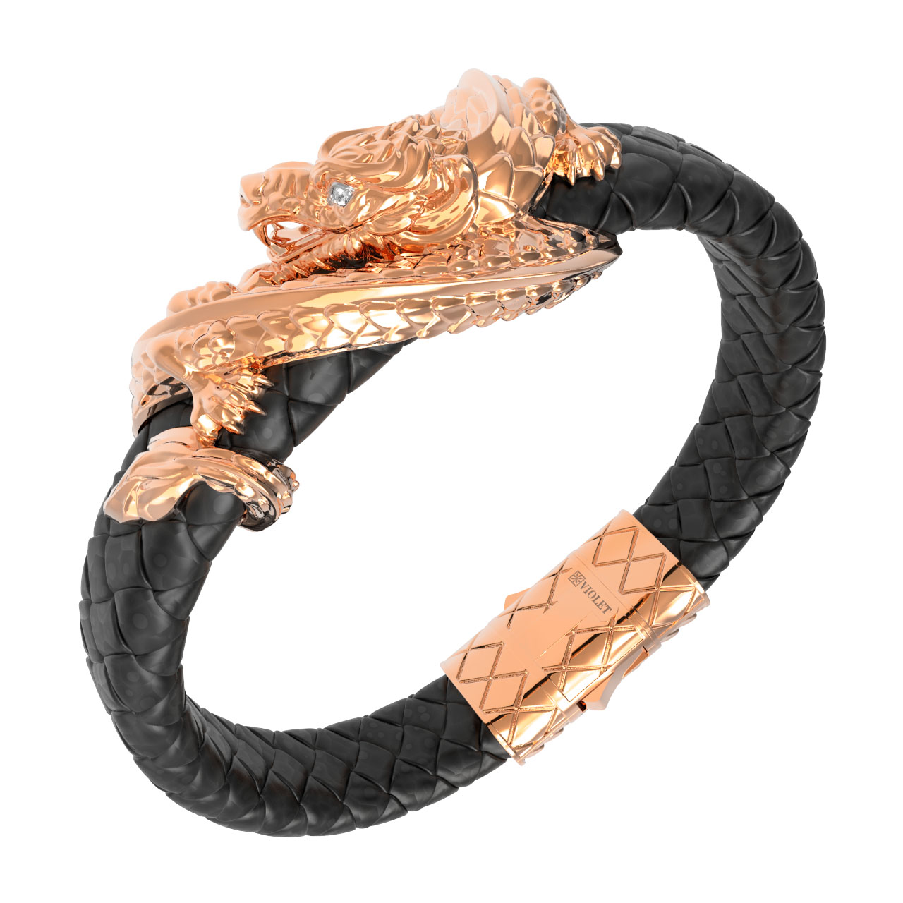 Браслет из золота c бриллиантами и кожаным шнурком