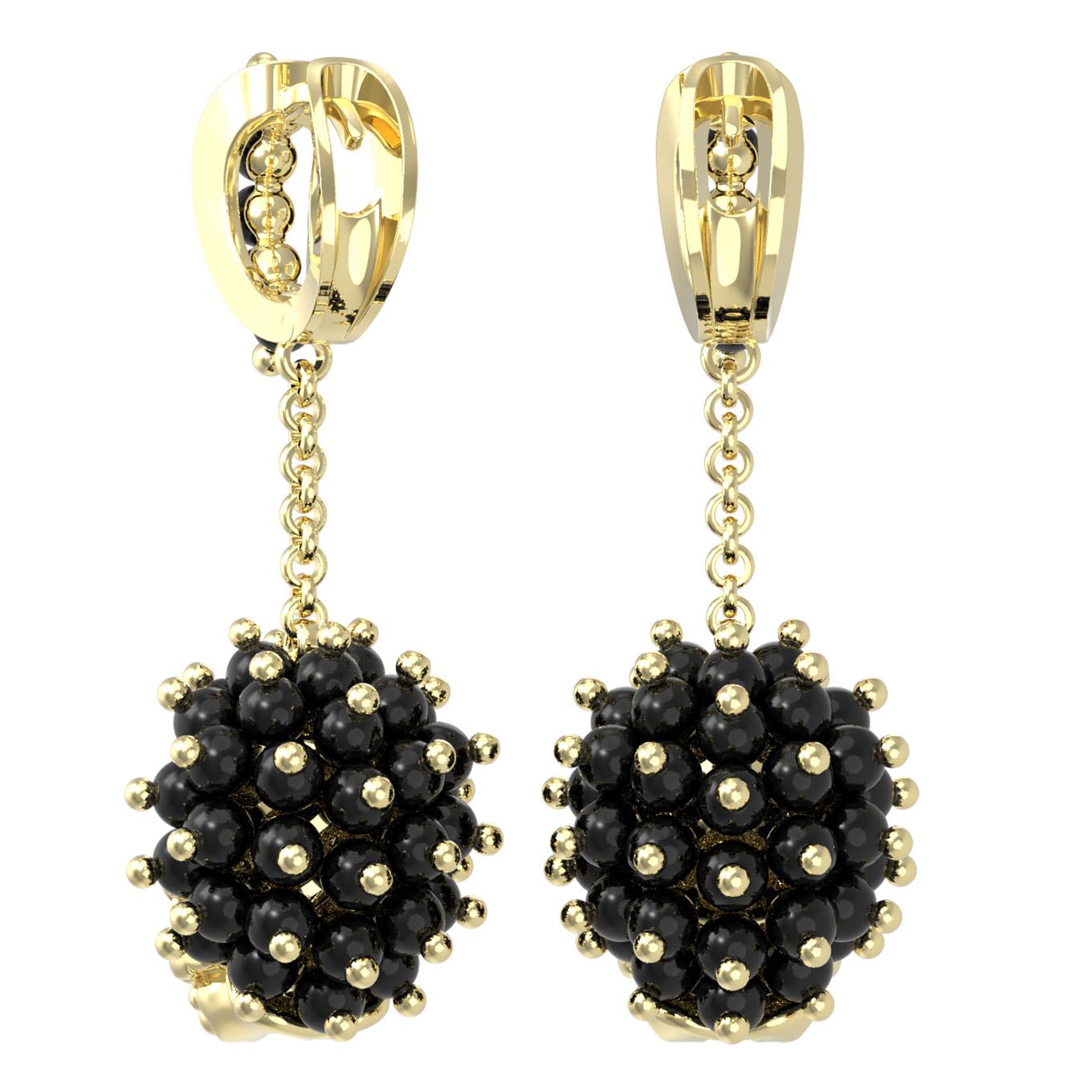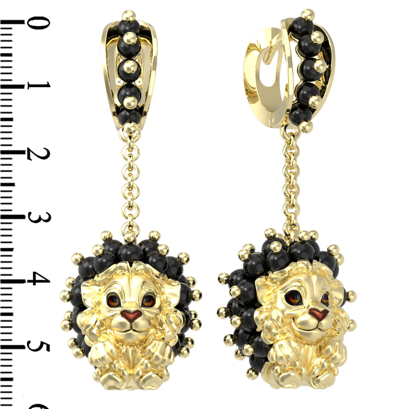 Серьги из лимонного золота c эмаль и ониксом