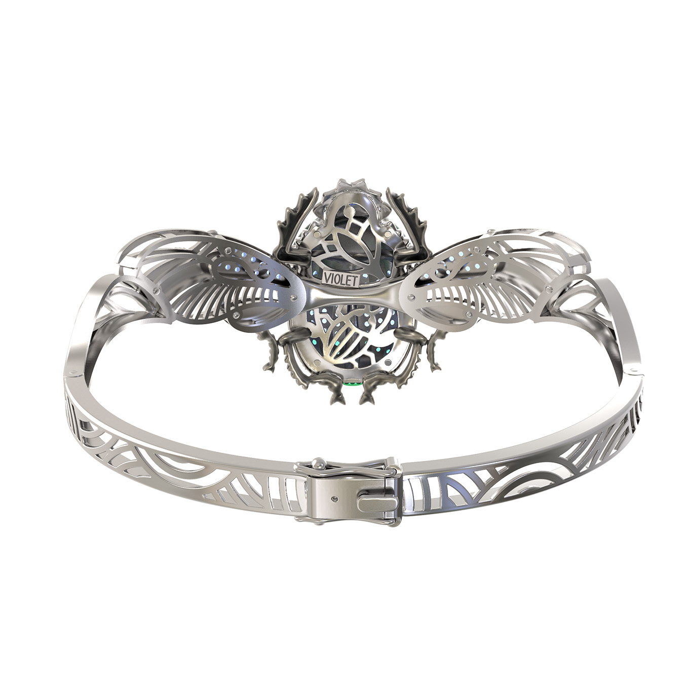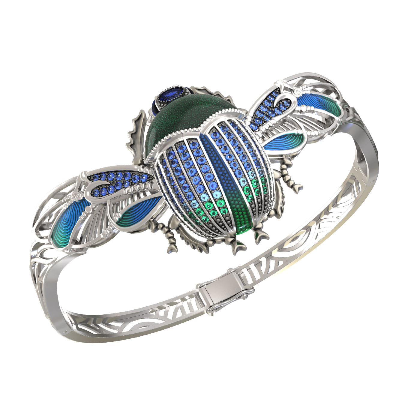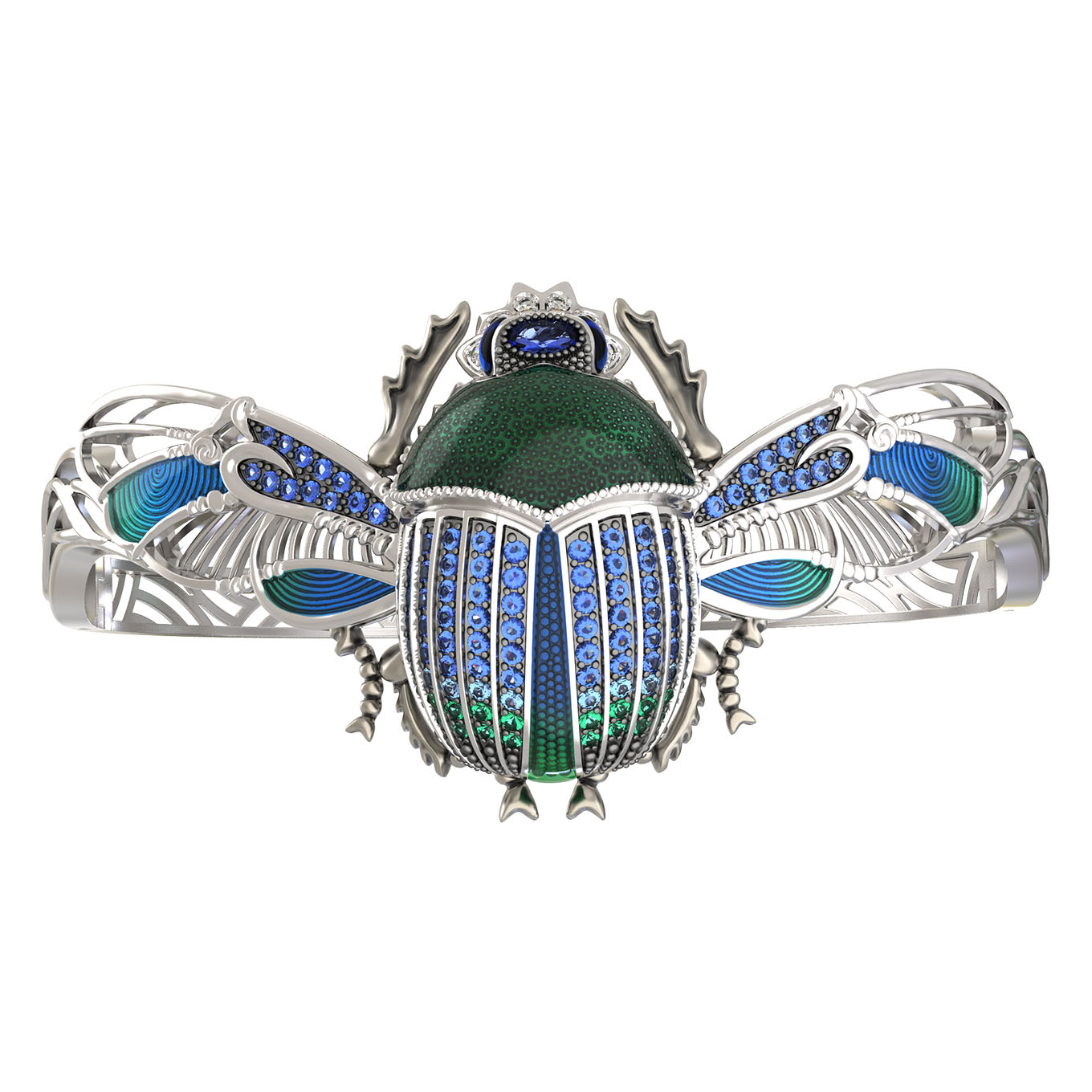 Браслет из белого золота c эмалью, фианитом, сапфиром и эмалью