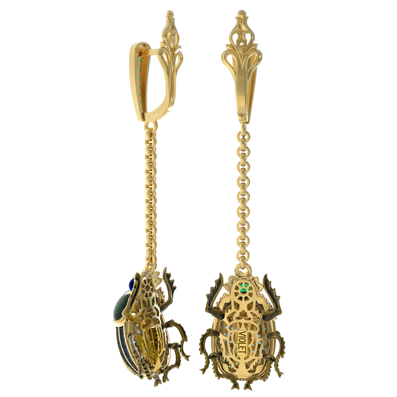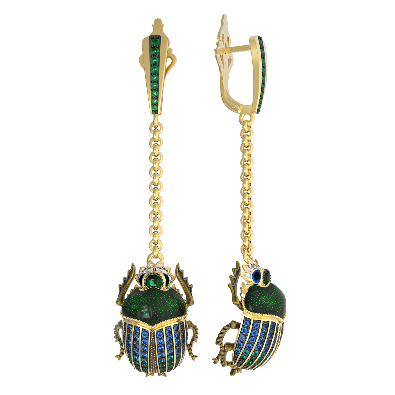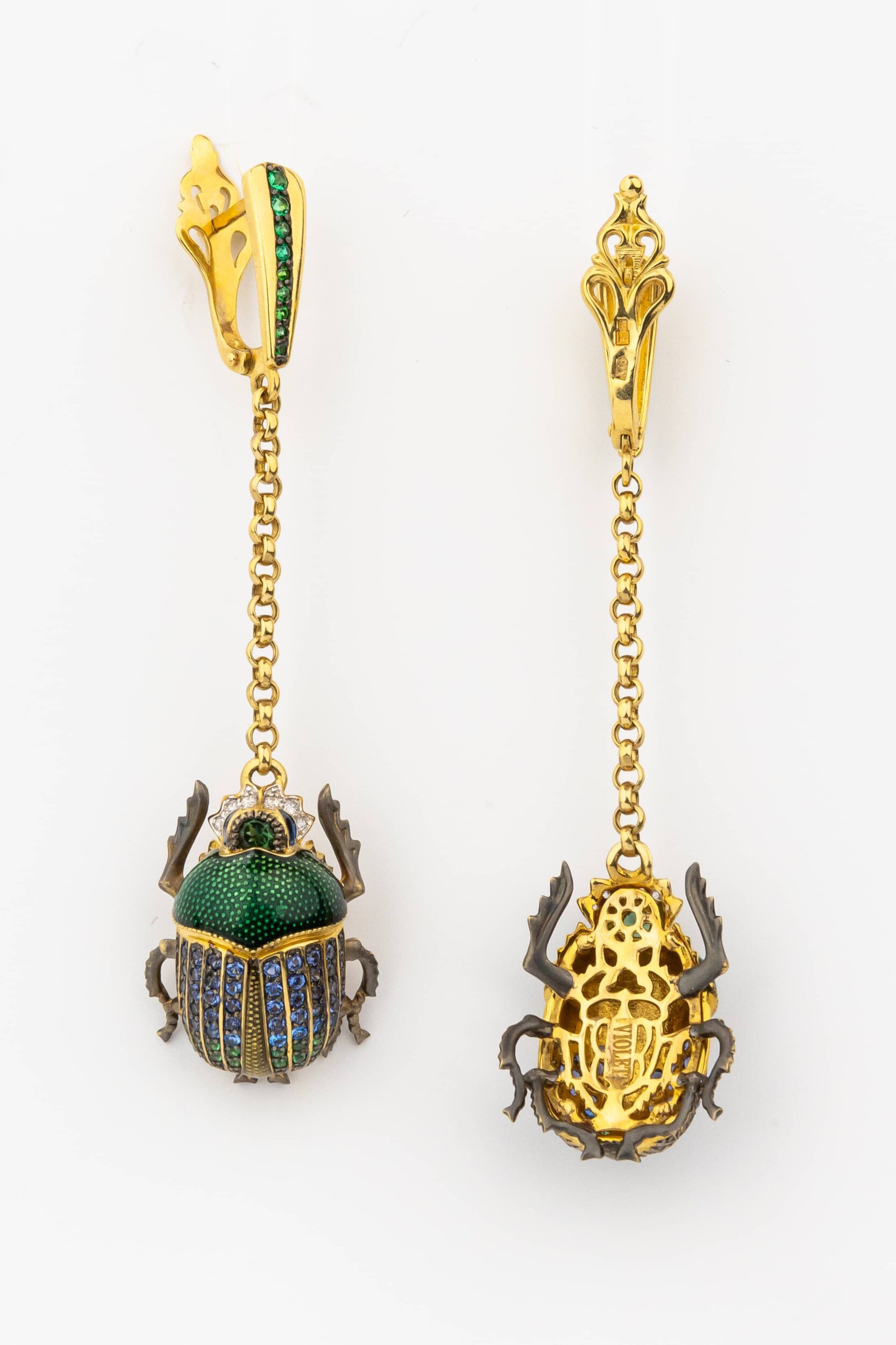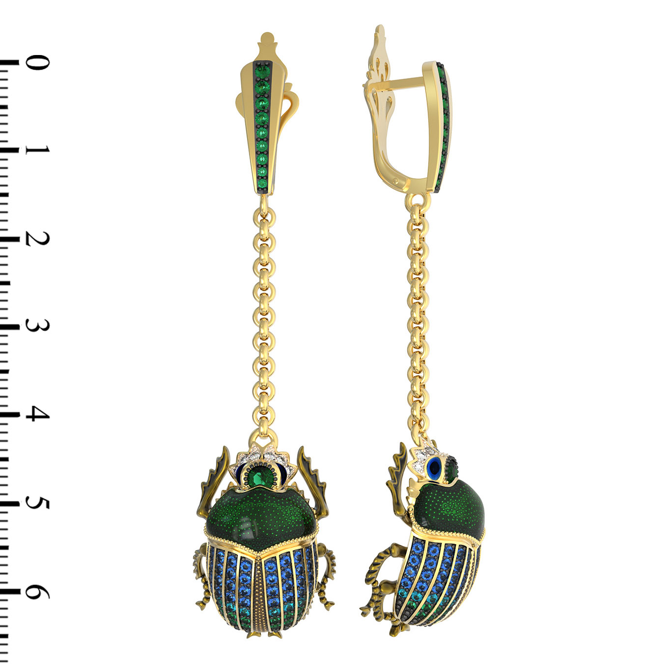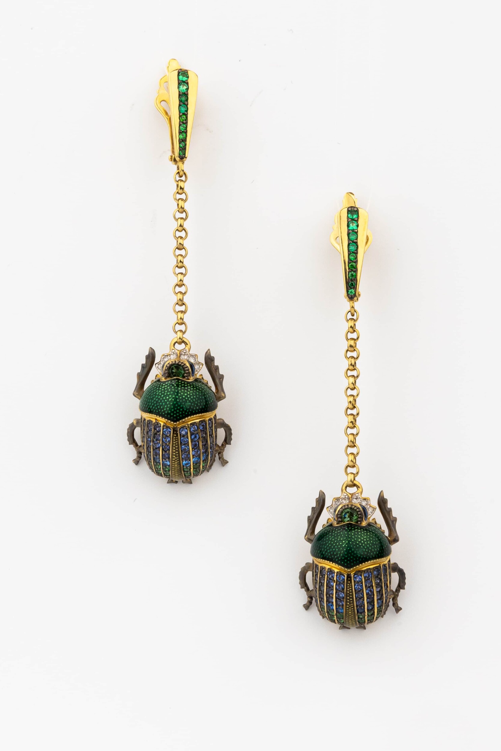 Серьги из лимонного золота c эмалью, фианитом, турмалином и сапфиром