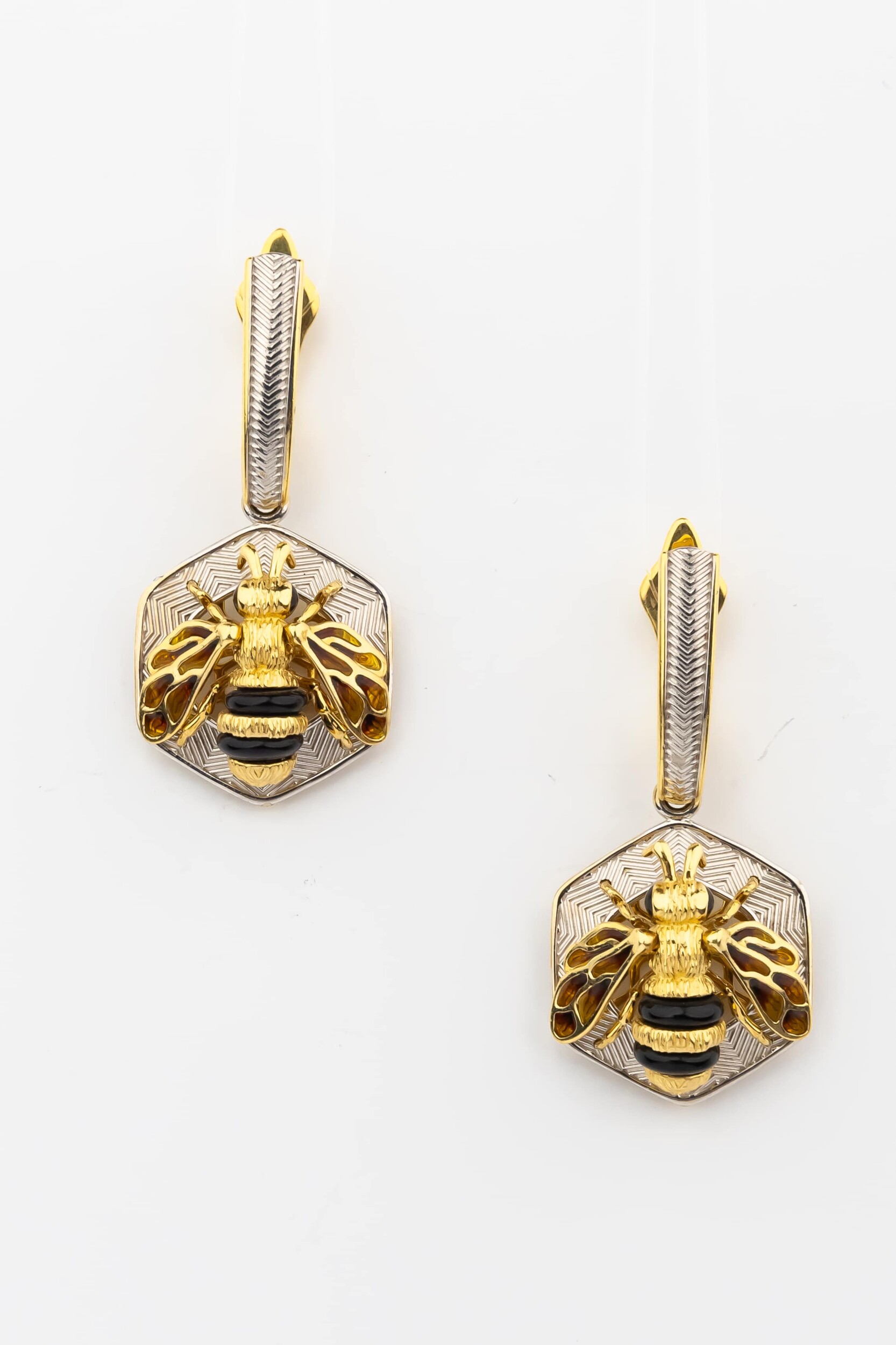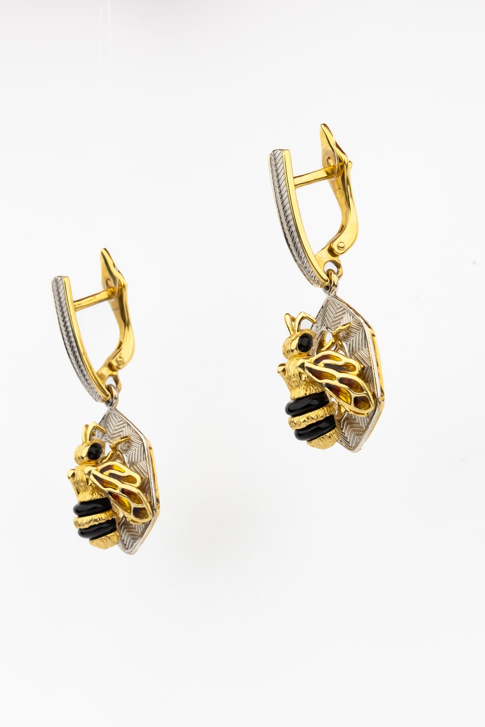 Серьги из лимонного золота c эмаль, ониксом и эмалью