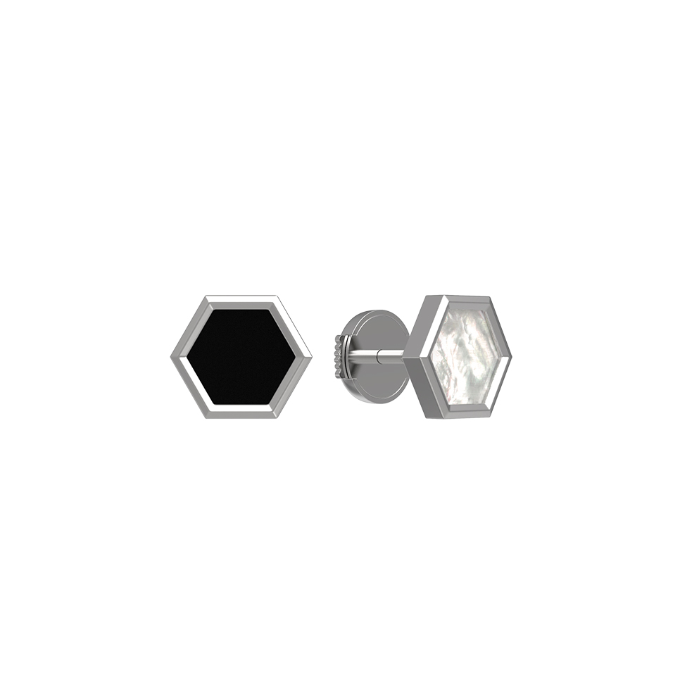 Серьги из белого золота c ониксом и перламутром