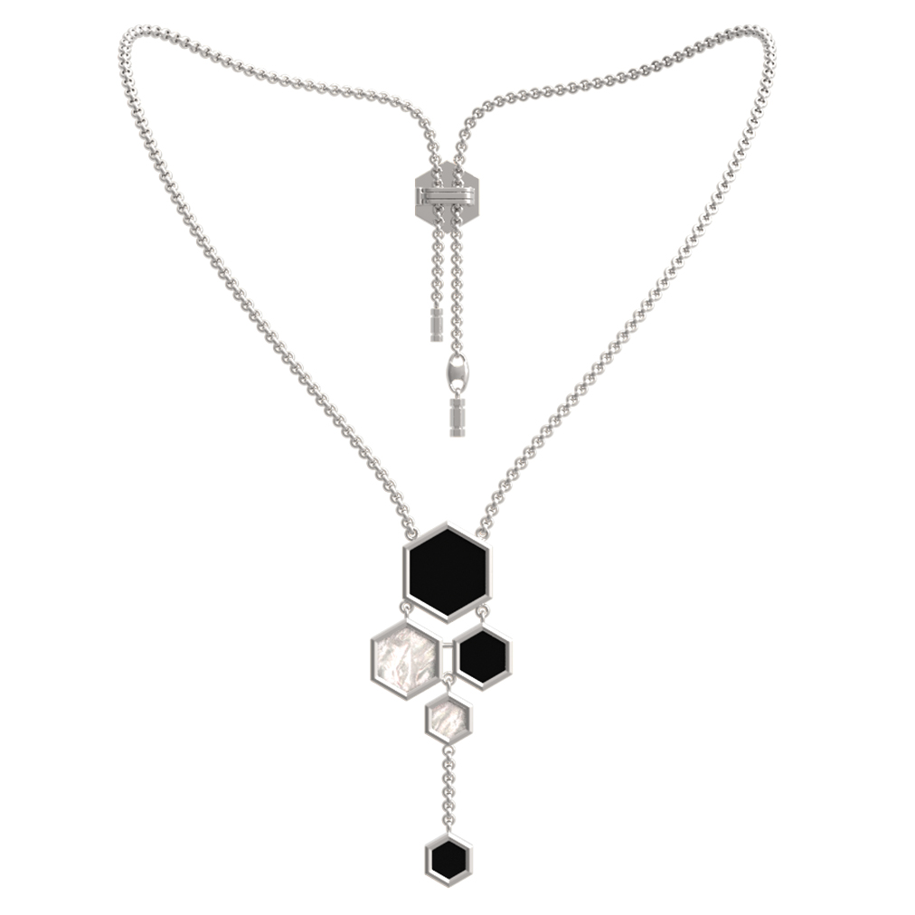 Колье из белого золота c ониксом и перламутром
