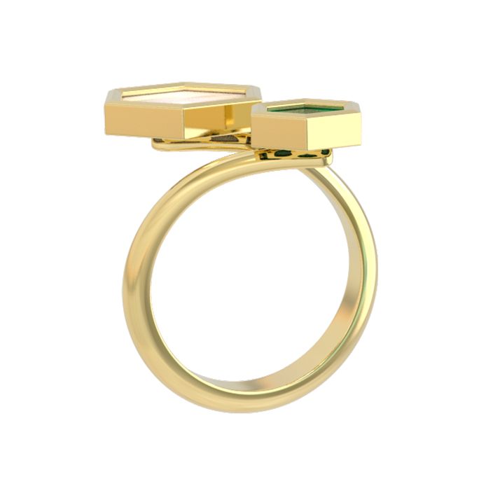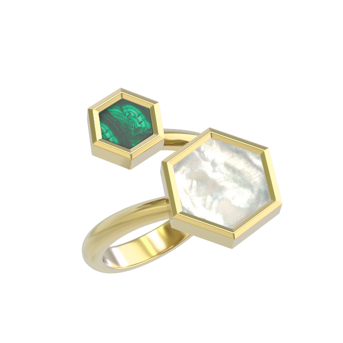 Кольцо из лимонного золота c малахитом и перламутром