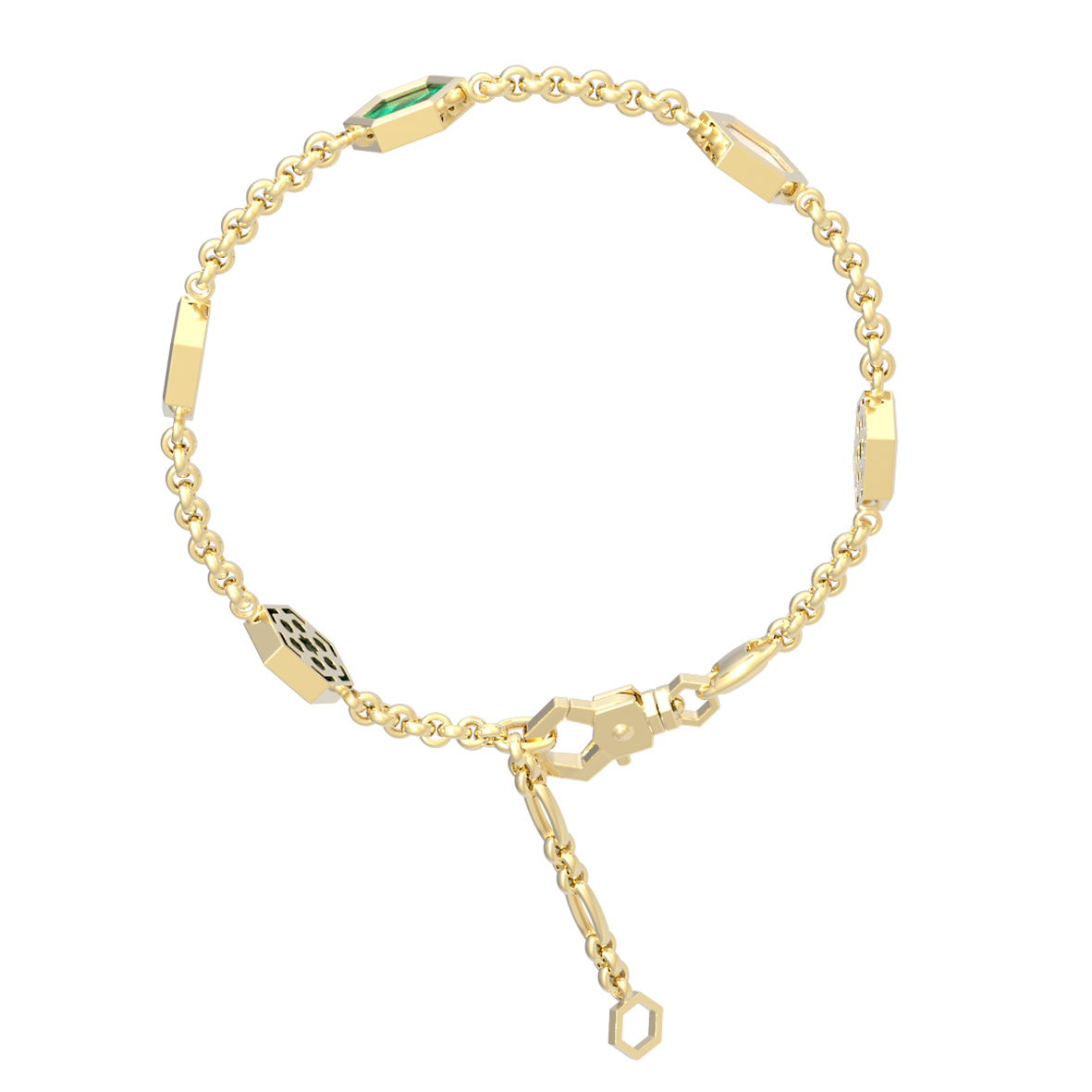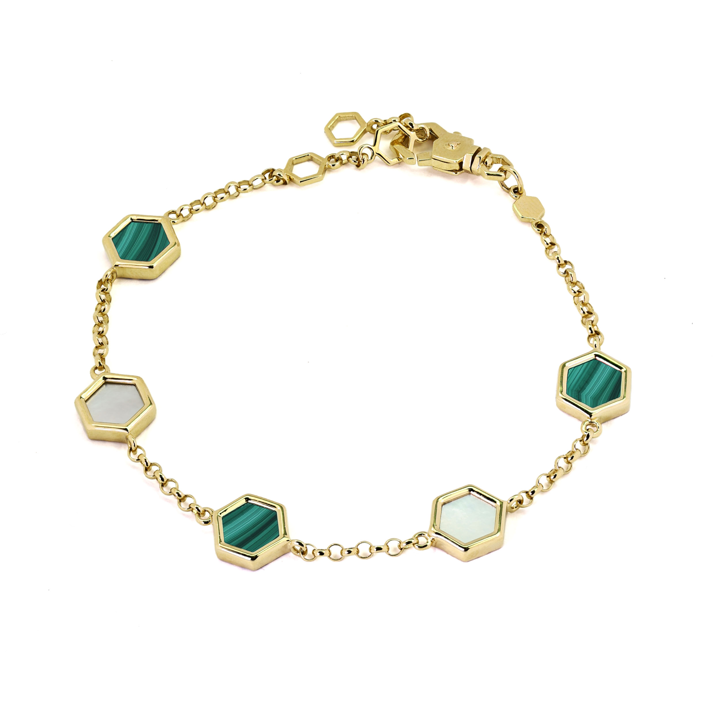 Браслет из лимонного золота c малахитом и перламутром