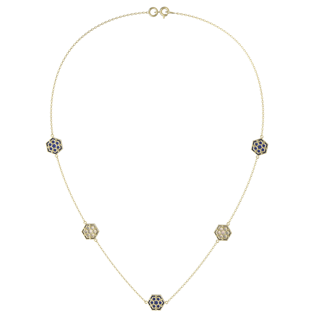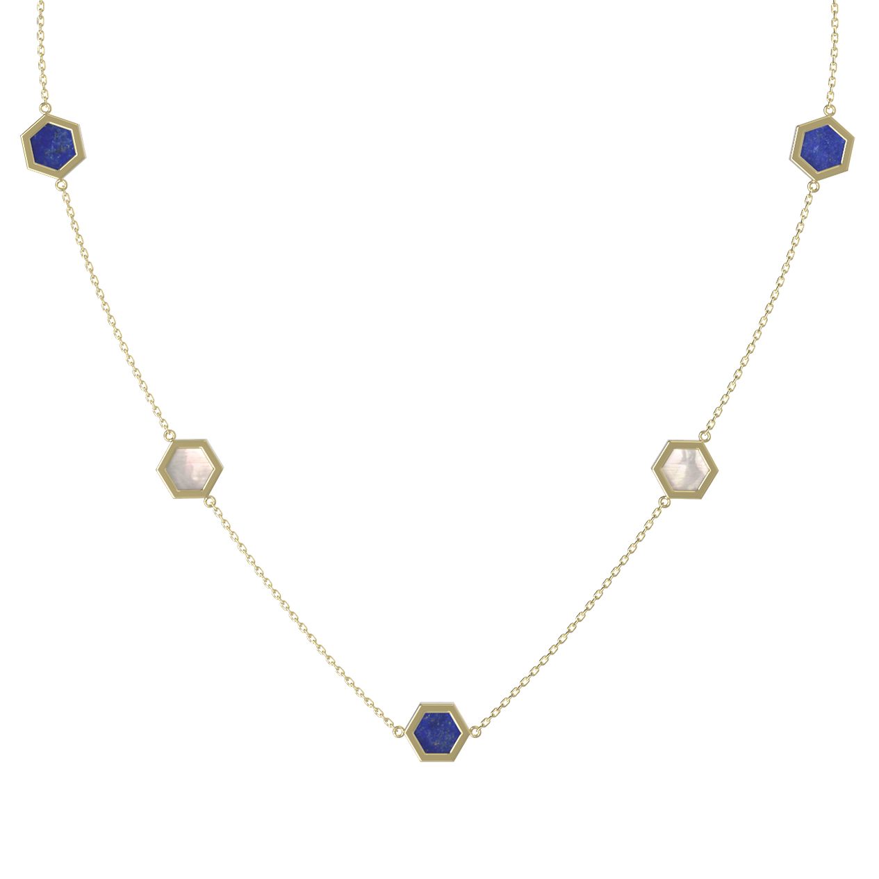 Колье из лимонного золота c лазуритом и перламутром