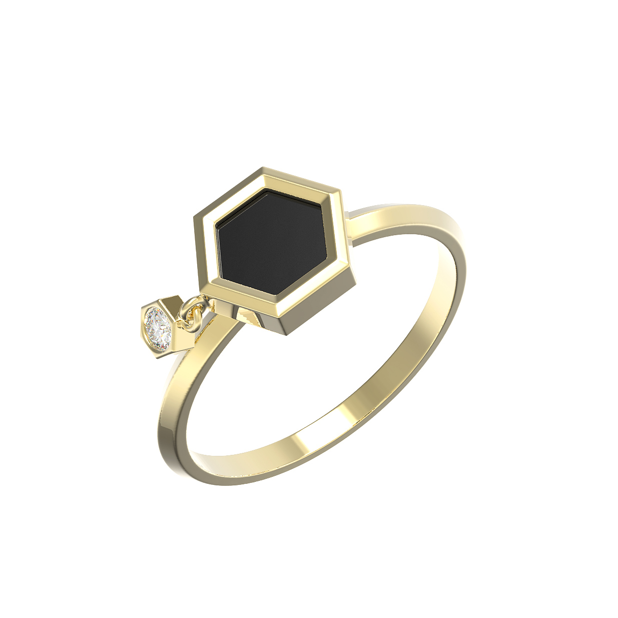 Кольцо из лимонного золота c бриллиантами и ониксом