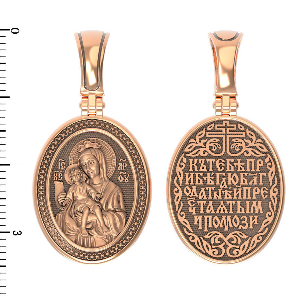На обороте образка написана молитва:«Ныне к Тебе прибегаю, Пречистая Дево, спаси мя мольбами Твоими».