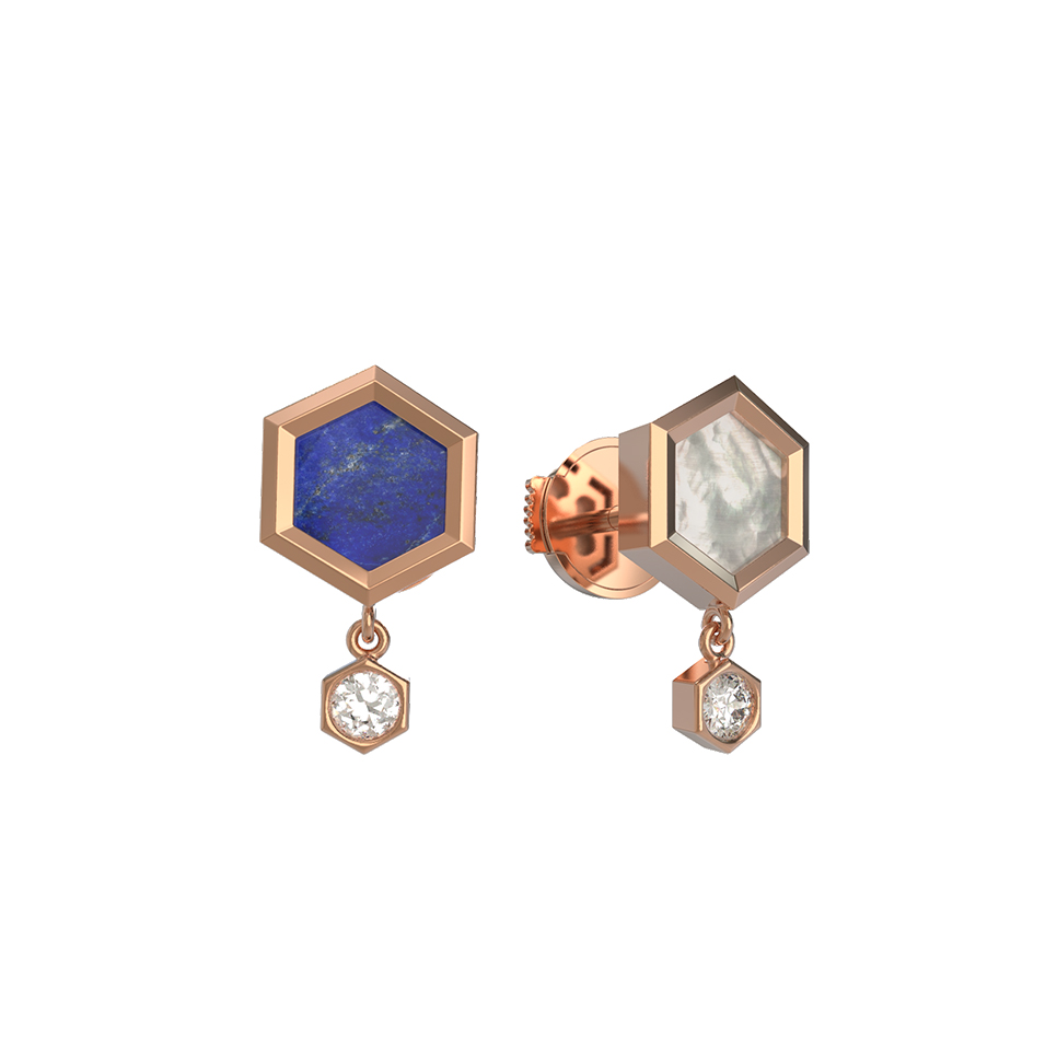 Серьги из золота c бриллиантами, лазуритом и перламутром