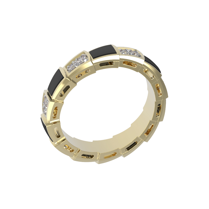 Кольцо из лимонного золота c бриллиантами и ониксом