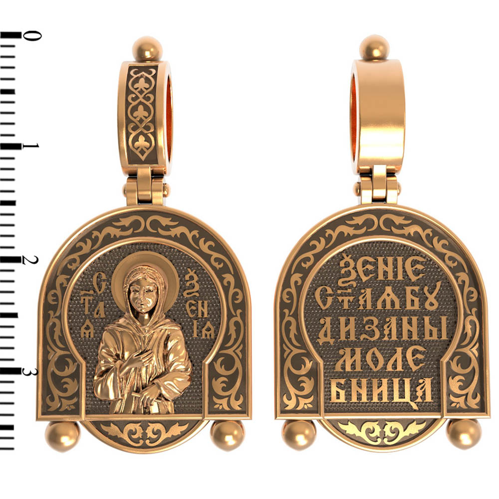 На оборотой стороне образка написана молитва: «Ксения святая, буди за нас молебница».