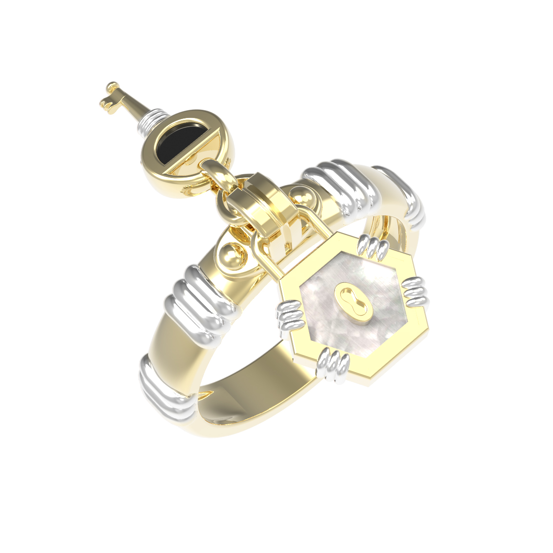 Кольцо из лимонного золота c ониксом и перламутром