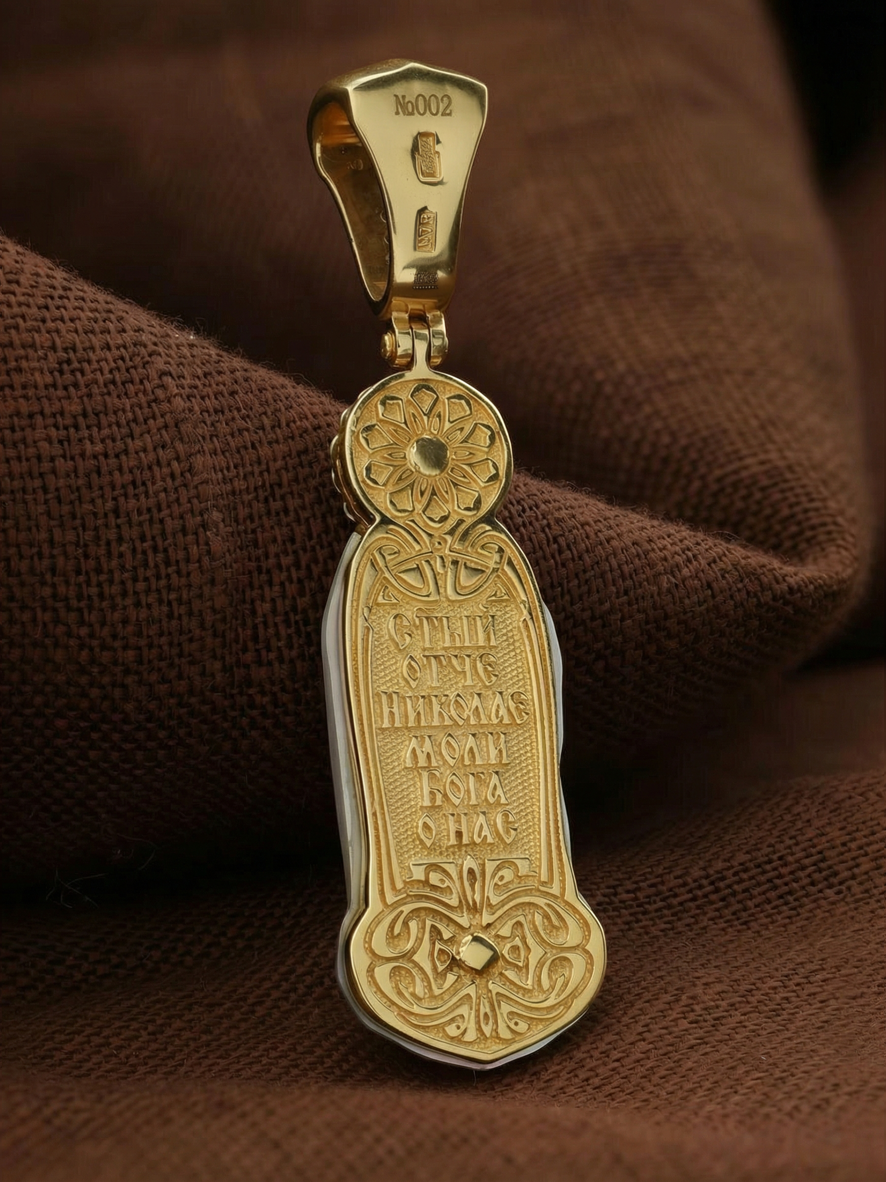 На образке изображен Святитель Николай архиепископ Мир Ликийских, Чудотворец. Он является одним из самых почитаемых святых в православном мире. Святитель Николай родился во второй половине III века в Малой Азии в Ликийском городе Патары. С рождения Божий Угодник проявлял необыкновенные дарования. Сохранилось Предание, что во время крещения он, никем не поддерживаемый, простоял в купели три часа. С детства Святитель избегал пустых развлечений, любил молитву, прекрасно учился и проводил свободное время за чтением Священного писания. Приняв сан священника, святитель Николай стал проводить еще более строгую подвижническую жизнь. Избранник Божий Николай стал вершиной всех добродетелей, поднятой до райской высоты. С кем из величайших праведников не сравнялся он образом духовной красоты, кому из них не последовал в своих деяниях и чудотворениях? Всеблаженный Николай был кроток, как Моисей, мужественен, как Давид, славен простотой нрава, как Иаков. Словно Ной, он спасал стадо Господне в новом ковчеге от потопа ересей. Вся жизнь святого Николая — это служение Богу. Много великих и преславных чудес сотворил на земле и на море великий Святитель Николай Угодник. Он помогал сущим в бедах, укрощал штормы, спасал от потопления и выносил на сушу из глубины морской, освобождал из плена и приносил освобожденных домой, избавлял от уз и темницы, защищал от посечения мечом, освобождал от смерти и подавал многим различные исцеления, слепым прозрение, хромым хождение, глухим слух, немым дар слова.