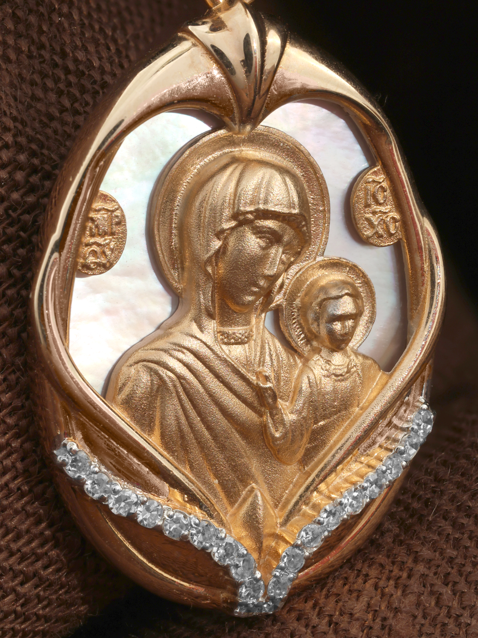 На лицевой стороне образка изображена Казанская икона Божией Матери. Пресвятая Богородица — милосердная заступница, просительница за нас перед Богом. Ее благодатная помощь изливается на нас по молитвам у ее чудотворных икон. Казанская икона явилась в 1579 году в Казани, вскоре после взятия Казанского царства у татар Иоанном Грозным. Этот образ Богородицы не раз сопровождал русский народ в бедствиях. Икона Божией Матери Казанская вдохновляла русских ратников в период Смутного времени при освобождении Москвы от поляков. Перед Казанской иконой в 1709 году, накануне Полтавской победы, император Петр I молился о даровании победы русскому войску. В 1812 году накануне отъезда в действующую армию перед чудотворной иконой Божией Матери молился князь Михаил Кутузов. Не только государственным мужам и дружинам указывала путь икона — по доброй традиции именно этой иконой благословляют на брак молодых родители, длинным списком чудес сопровождается этот образ Богоматери — один из самых любимых на Руси. Существует множество древних списков с этой удивительной иконы.