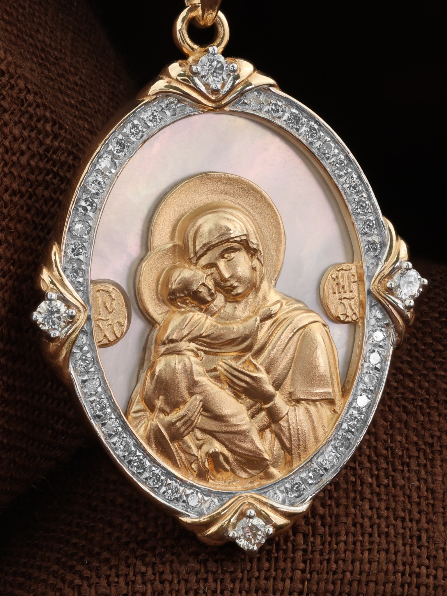 Образок из золота c бриллиантами и перламутром
