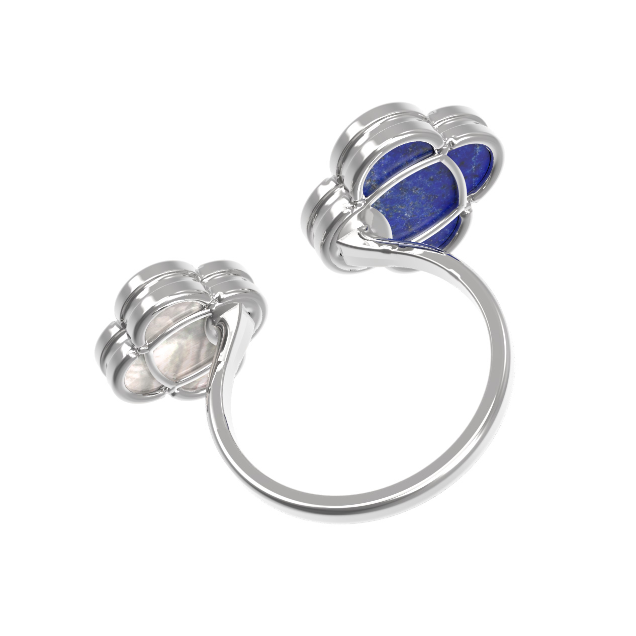 Кольцо из белого золота c лазуритом и перламутром